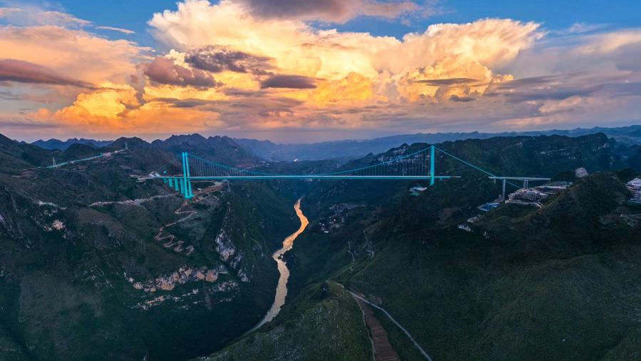 The bridge, soaring 625 meters above the Beipan River in Guizhou's mountainous terrain, is nearly nine times the height of San Francisco's Golden Gate Bridge. Spanning the Huajiang Grand Canyon, dubbed "the Earth's crack," the 2,890-meter-long structure is the latest addition to the rapidly expanding infrastructure network of the world's second-largest economy.