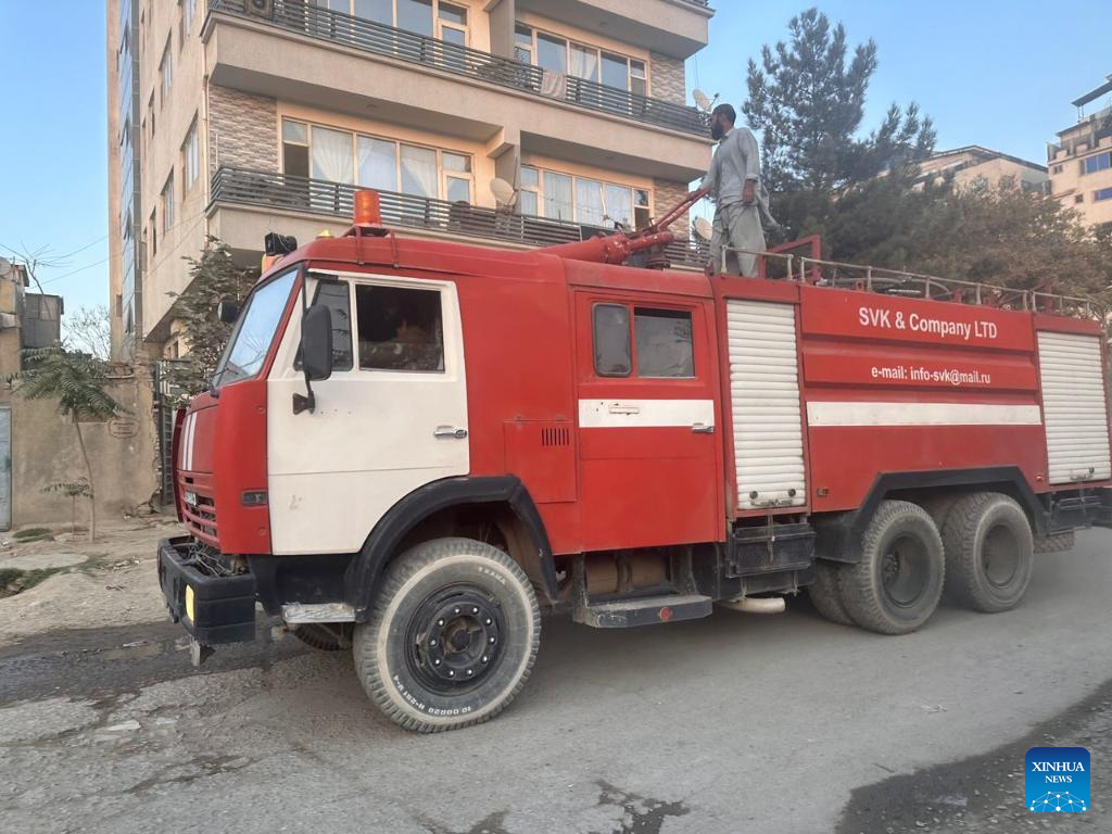 A fire truck rushes to the explosion site in Kabul, the capital of Afghanistan, Oct. 15, 2025. A blast was heard in the Afghanistan capital Kabul at around 3 p.m. local time Wednesday, causing panic among city residents. (Photo by Saifurahman Safi/Xinhua)