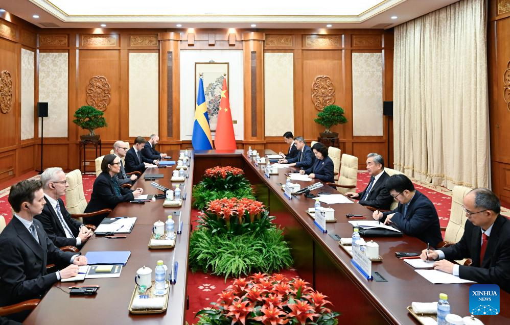 Wang, who is also a member of the Political Bureau of the Communist Party of China Central Committee, made the remarks during a meeting with Sweden's Minister for Foreign Affairs Maria Malmer Stenergard.