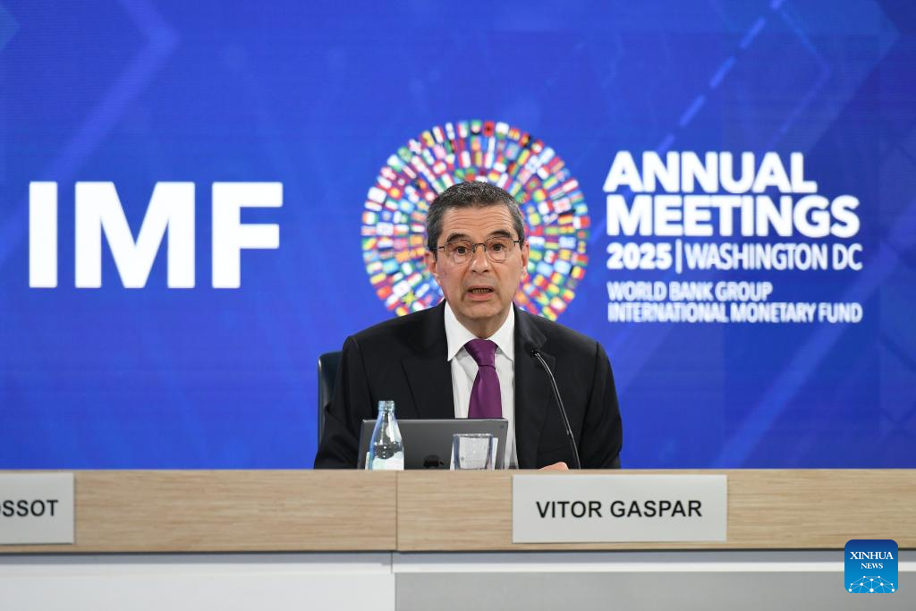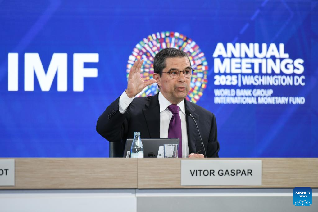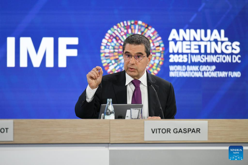 Vitor Gaspar, outgoing director of the IMF's fiscal affairs department, speaks at a press briefing on Fiscal Monitor in Washington, D.C., the United States, Oct. 15, 2025. The fiscal chief of the International Monetary Fund (IMF) said it is more important for governments to "deliver value for money" than simply to spend more, noting that spending efficiency is an "extremely important element" in public finances. "The benefits, the growth dividends are particularly strong when spending is efficient, when spending efficiency improves," Vitor Gaspar told Xinhua in a recent interview. (Xinhua/Li Rui)