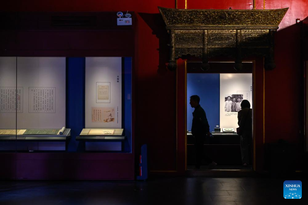 A man visits the "Benevolence in Motion: Donated Artifacts in the Palace Museum" exhibition in Beijing, capital of China, Oct. 16, 2025. The expo kicked off here on Thursday. (Xinhua/Jin Liangkuai)