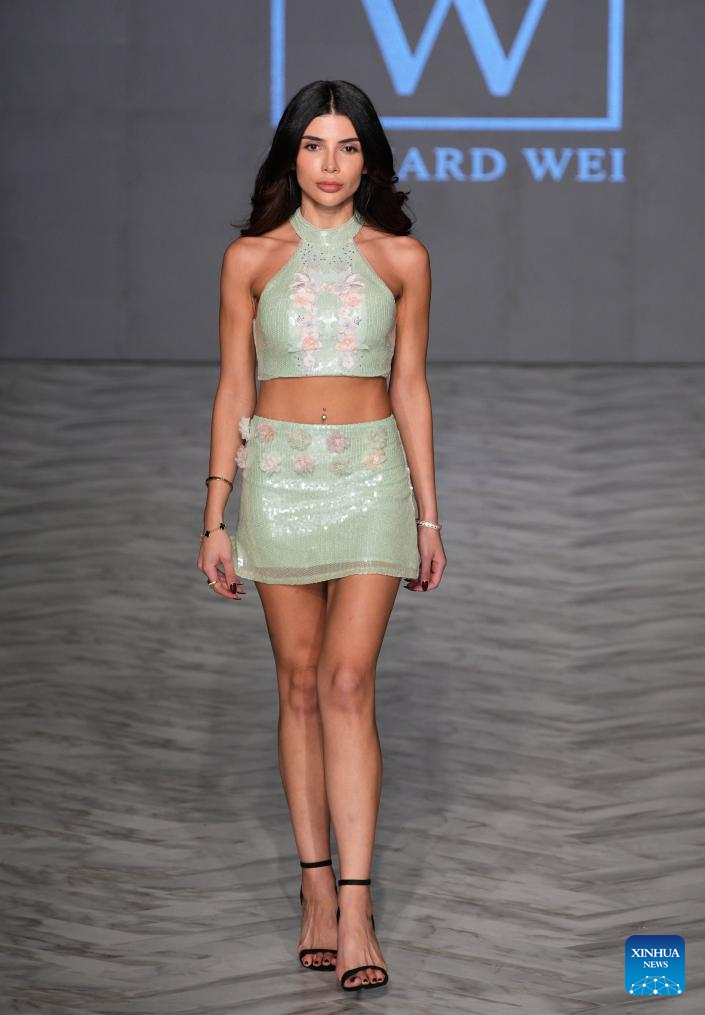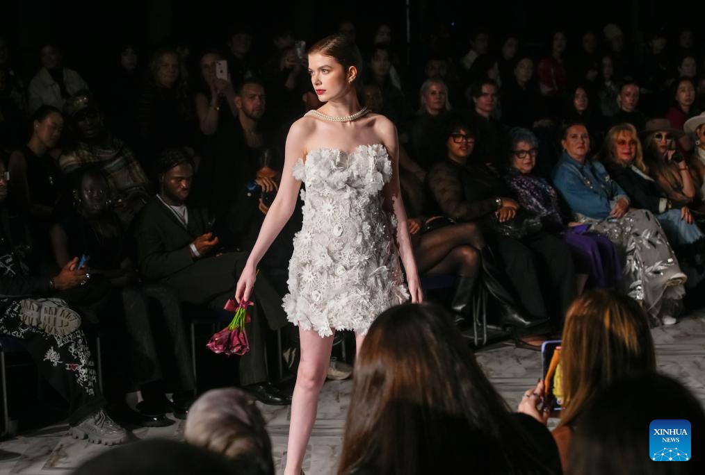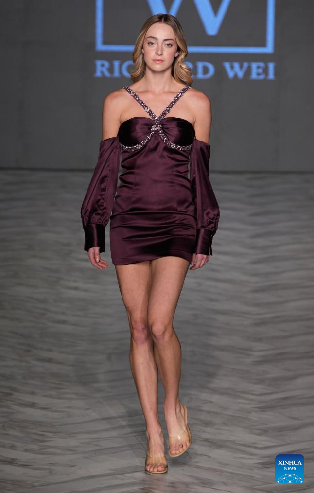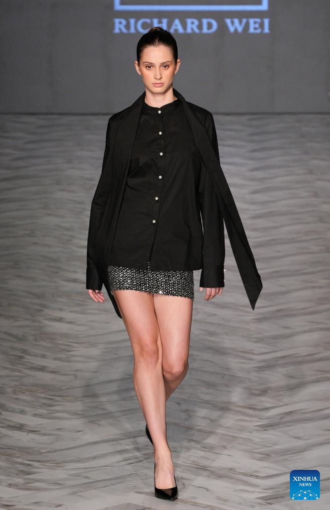 A model presents a creation of Richard Wei during the Spring/Summer 2026 Collections Fashion Show at Vancouver Fashion Week in Vancouver, British Columbia, Canada, Oct. 15, 2025. (Photo by Liang Sen/Xinhua)
