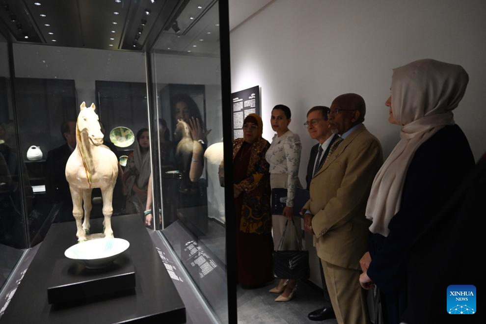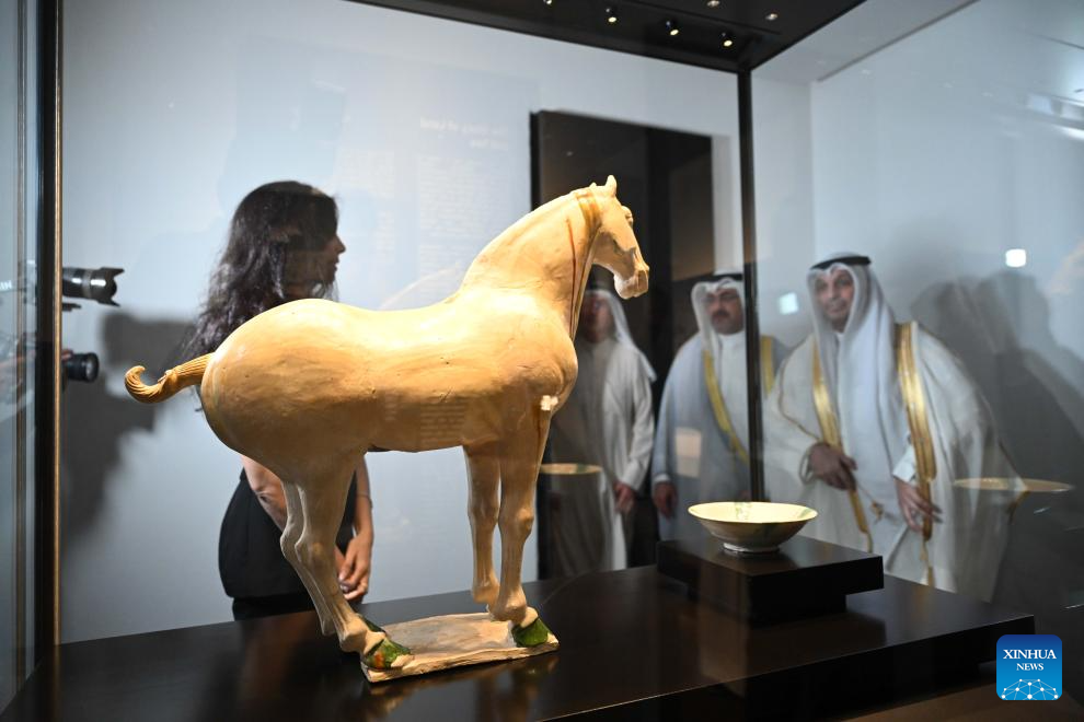 KUWAIT CITY, Oct. 15 (Xinhua) -- The Chinese art exhibition "Distant and Close" opened on Wednesday at Kuwait's Dar al-Athar al-Islamiyyah, or House of Islamic Antiquities, a major public museum in Kuwait City. The exhibition, running through 2026, showcases the historical and cultural ties between China and Kuwait.