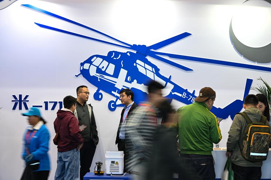 People visit the 7th China Helicopter Exposition in Tianjin, north China, Oct. 16, 2025. (Xinhua/Zhao Zishuo)