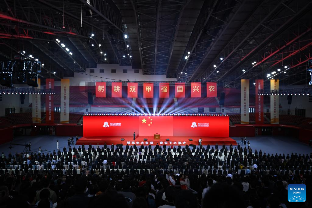 This photo taken on Oct. 16, 2025 shows a meeting marking the 120th anniversary of the founding of China Agricultural University at a campus of the university in Beijing, capital of China. The China Agricultural University on Thursday hosted a series of events to mark the 120th anniversary of its founding. (Xinhua/Chen Zhonghao)