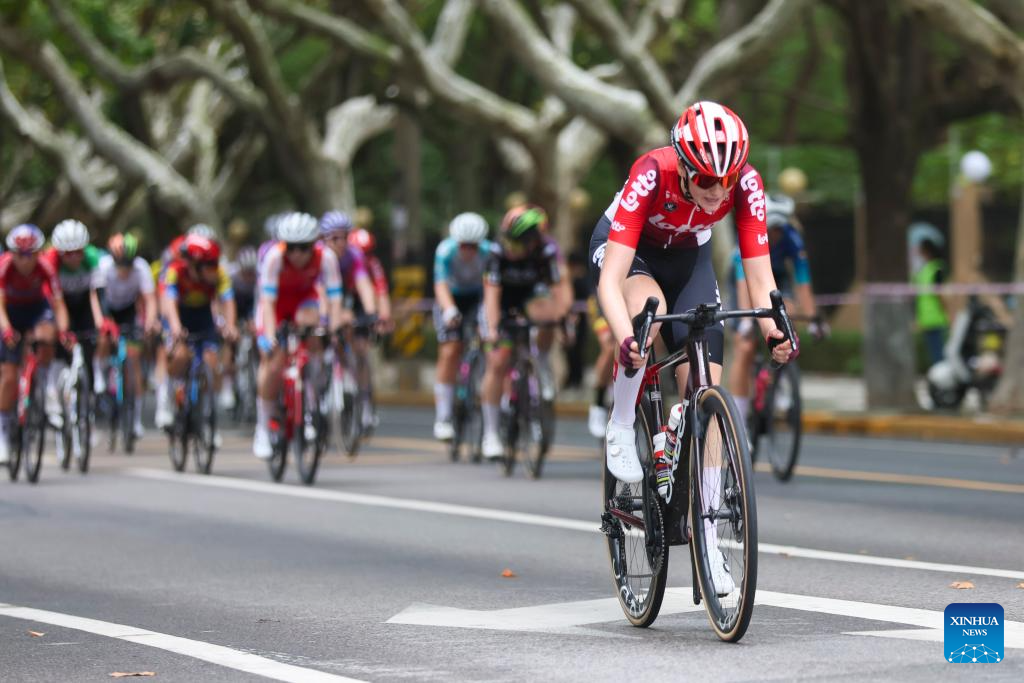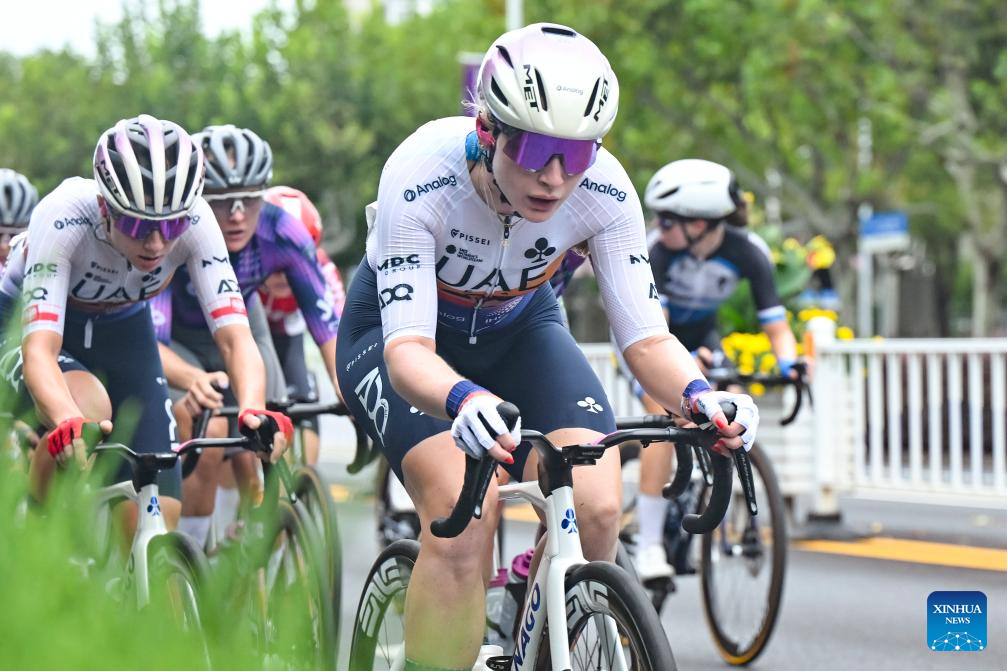Liv-Alula-Jayco's Josie Talbot is seen during the Stage 3 of the UCI Women's WorldTour Tour of Chongming Island road cycling race in Shanghai, east China, Oct. 16, 2025. (Xinhua/Chen Haoming)