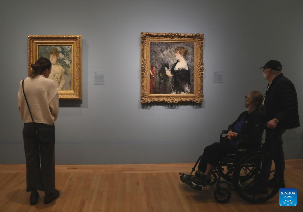 People visit an exhibition on Manet & Morisot at the Legion of Honor Fine Arts Museums of San Francisco in San Francisco, California, the United States, Oct. 15, 2025. Opening at the Legion of Honor on Oct. 11, 2025, the exhibition will run through to March 1, 2026. (Photo by Liu Yilin/Xinhua)