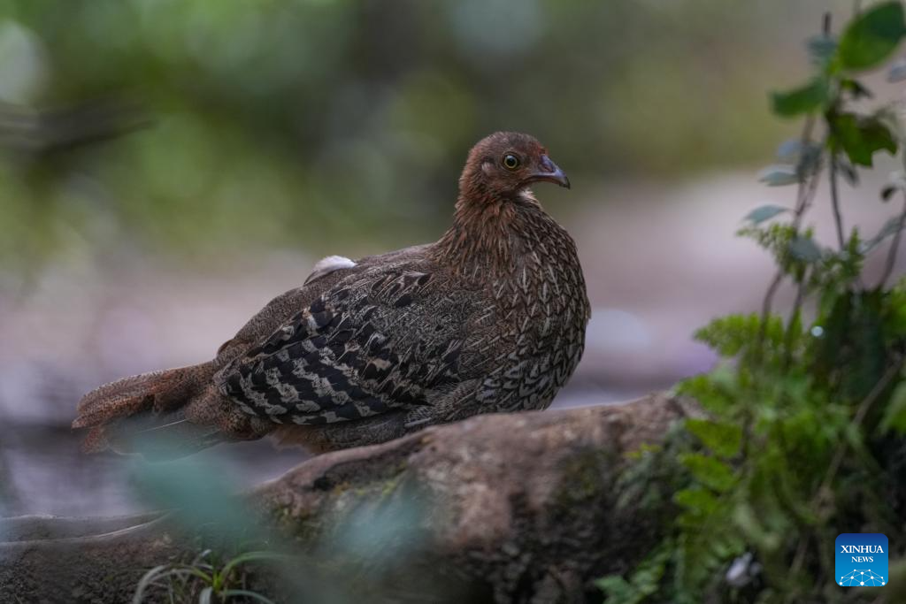 A Sri Lankan junglefowl is seen at Horton Plains National Park in Nuwara Eliya, Sri Lanka, on Oct. 15, 2025. Horton Plains National Park, located in the central highlands of Sri Lanka at an elevation of over 2,000 meters, is one of the island's highest plateau ecosystems and the source of several major rivers.