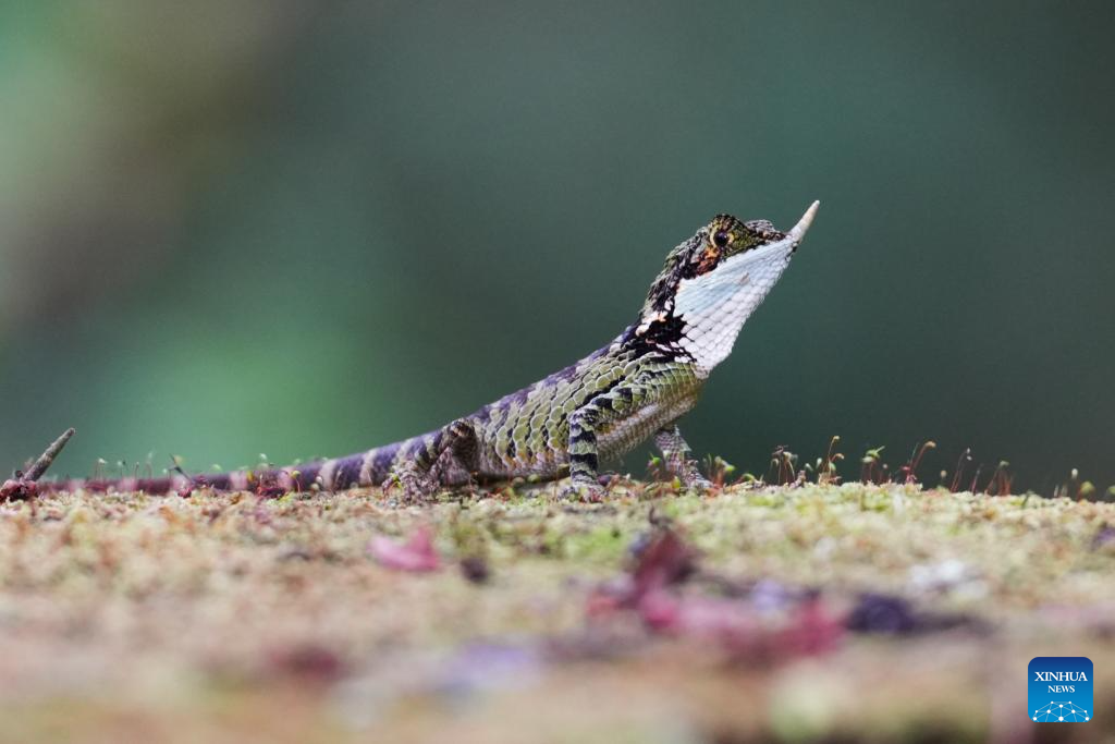 A rhino-horned lizard is pictured at Horton Plains National Park in Nuwara Eliya, Sri Lanka, on Oct. 15, 2025. Horton Plains National Park, located in the central highlands of Sri Lanka at an elevation of over 2,000 meters, is one of the island's highest plateau ecosystems and the source of several major rivers.