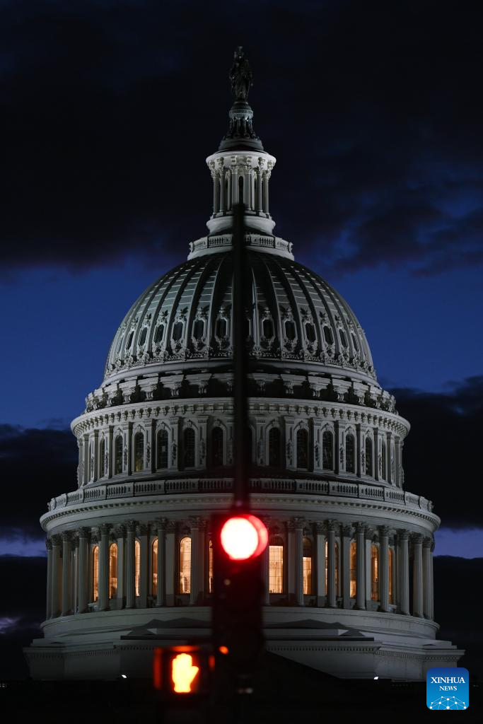 The U.S. Capitol building is seen at sunset in Washington, D.C., the United States, on Oct. 15, 2025. (Xinhua/Li Rui)