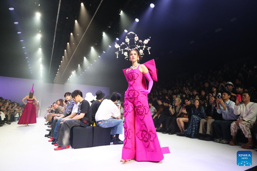 Models present creations during the Bangkok International Fashion Week in Bangkok, Thailand, on Oct. 16, 2025. Running from Oct. 16 to 19, the Bangkok International Fashion Week is an important platform for Thai designers to showcase their designs and creativity. (Xinhua/Rachen Sageamsak)
