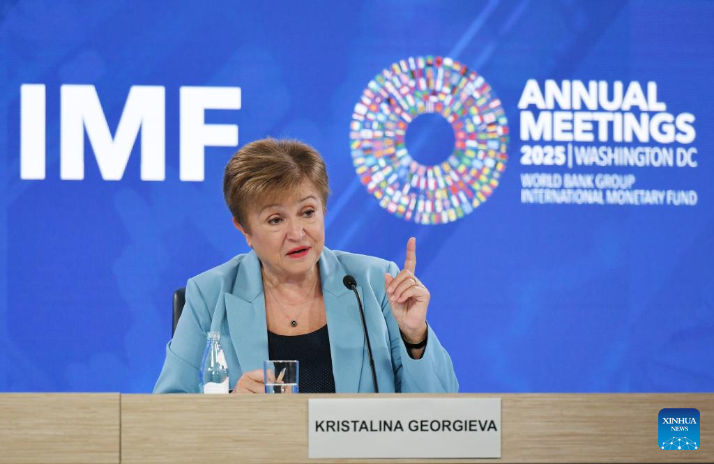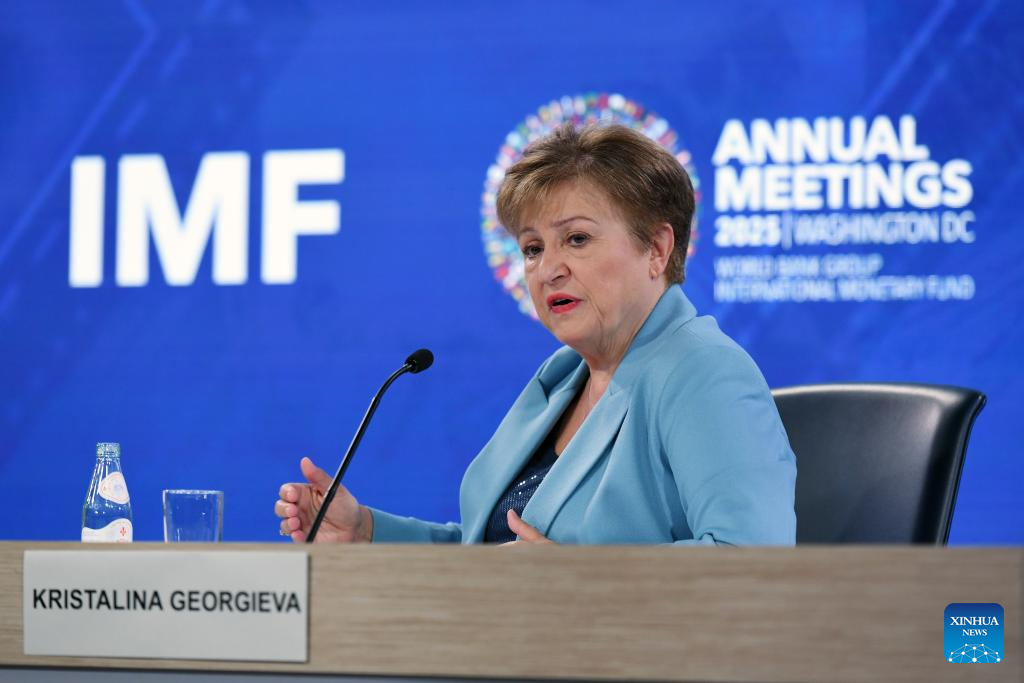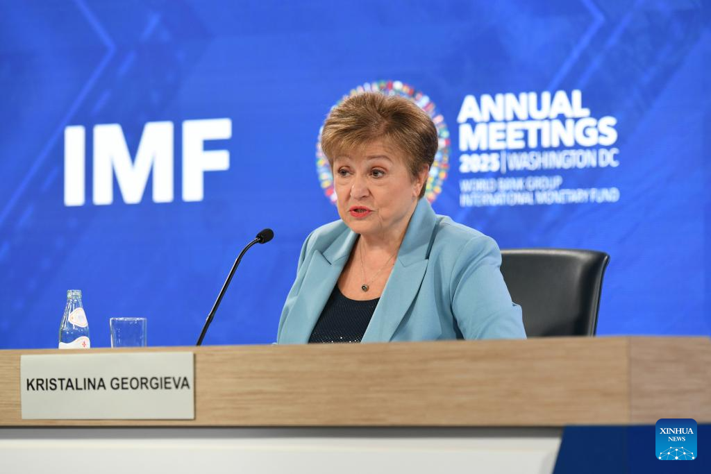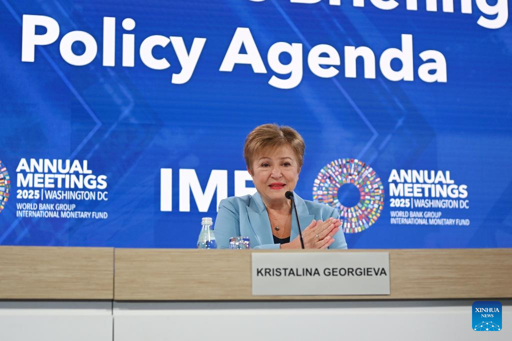 International Monetary Fund (IMF) Managing Director Kristalina Georgieva speaks at the managing director's briefing on the Global Policy Agenda in Washington, D.C., the United States, Oct. 16, 2025. (Xinhua/Li Rui)
