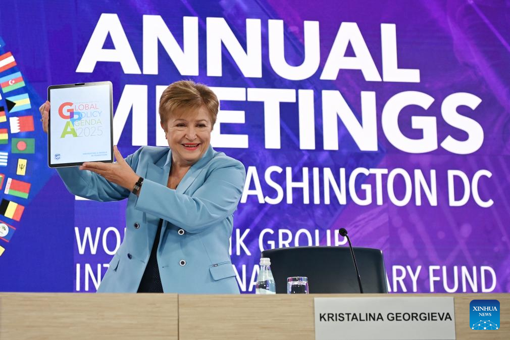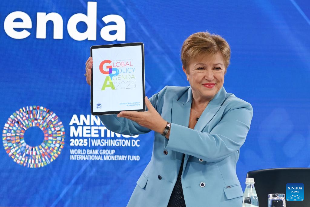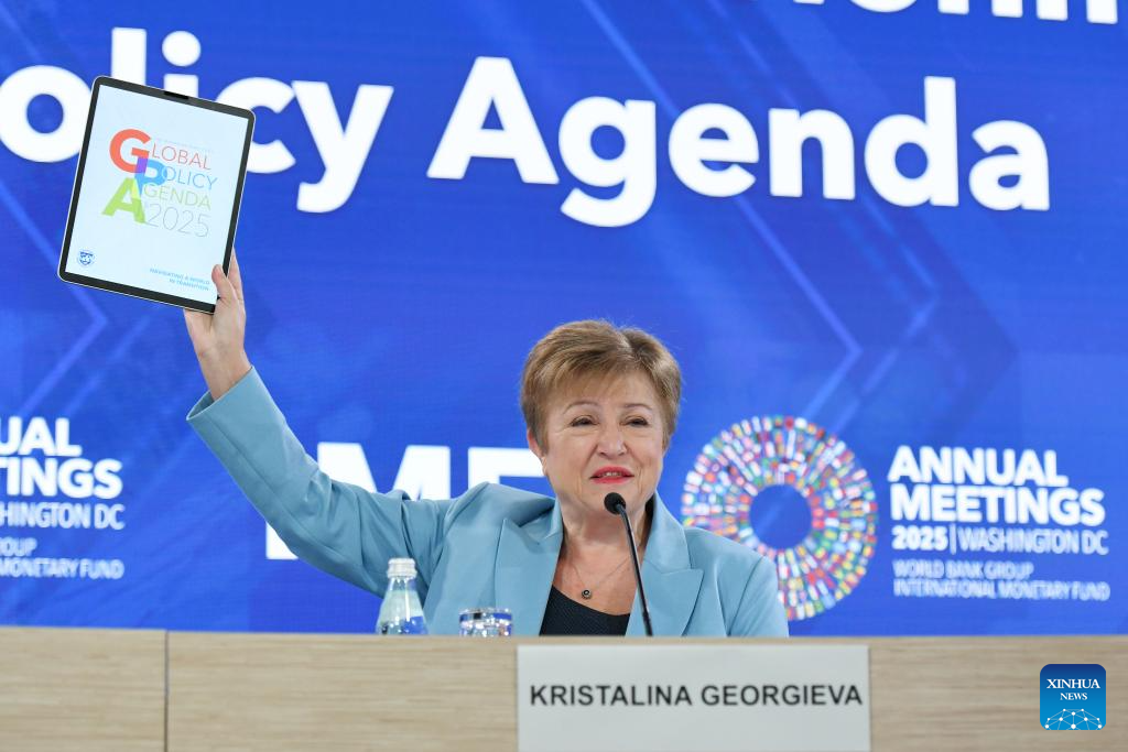 International Monetary Fund (IMF) Managing Director Kristalina Georgieva presents her Global Policy Agenda at the managing director's briefing on the Global Policy Agenda in Washington, D.C., the United States, Oct. 16, 2025. (Xinhua/Li Rui)