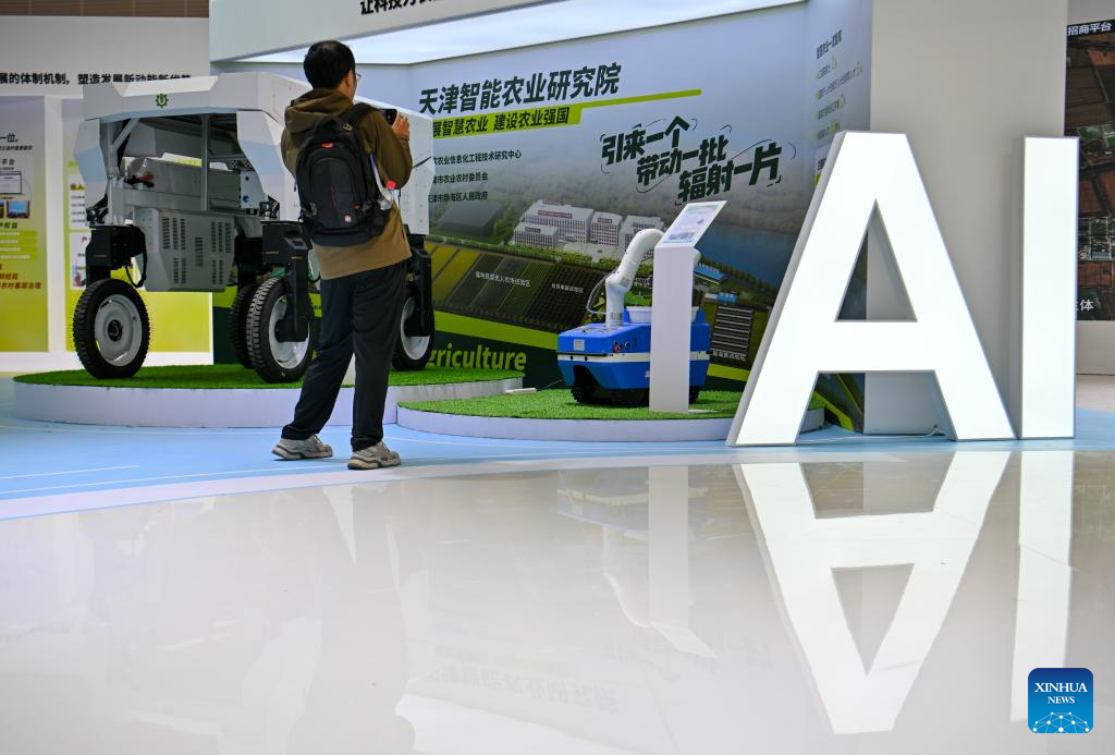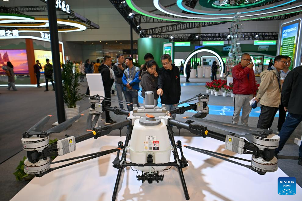 People visit the exhibition zone of agricultural technology during the 22nd China International Agricultural Trade Fair in north China's Tianjin Municipality, Oct. 17, 2025. The agricultural trade fair was launched Friday in Tianjin, and will last until Oct. 19. With 12 exhibition areas, the fair saw about 25,000 types of agricultural products on display, brought by over 3,000 exhibitors. (Xinhua/Sun Fanyue)