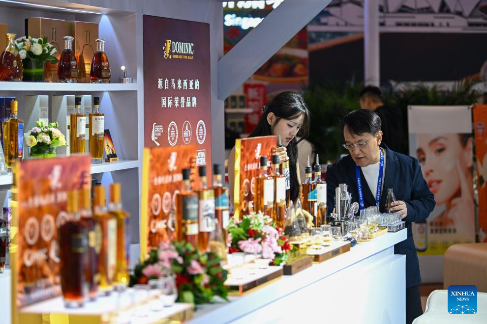 People visit the booth of Malaysia during the 22nd China International Agricultural Trade Fair in north China's Tianjin Municipality, Oct. 17, 2025. The agricultural trade fair was launched Friday in Tianjin, and will last until Oct. 19. With 12 exhibition areas, the fair saw about 25,000 types of agricultural products on display, brought by over 3,000 exhibitors. (Xinhua/Sun Fanyue)