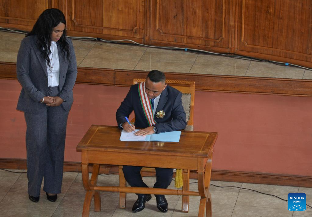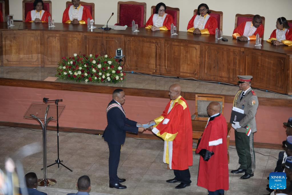 He took the oath of office at the African island nation's High Constitutional Court. (Photo by Sitraka Rajaonarison/Xinhua)