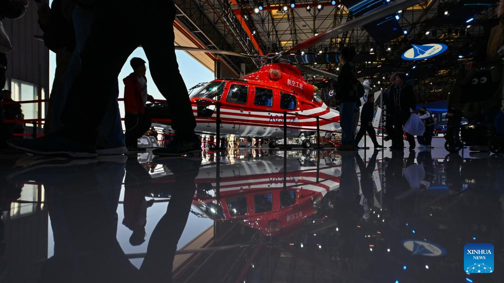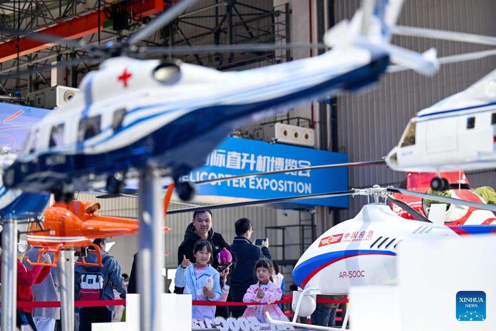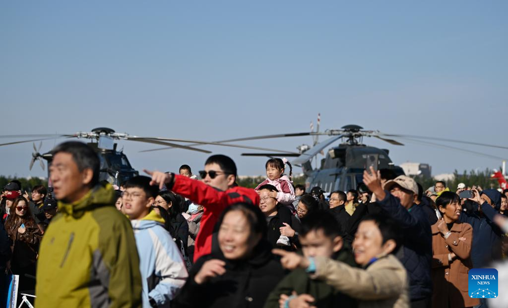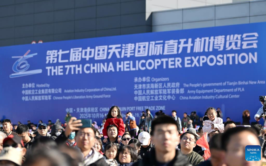 Visitors are seen during the 7th China Helicopter Exposition in north China's Tianjin Municipality, Oct. 18, 2025. The exposition opened to the general public on Saturday. (Photo by Du Penghui/Xinhua)