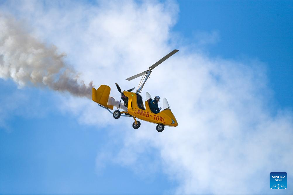 A gyrocopter performs during the 7th China Helicopter Exposition in north China's Tianjin Municipality, Oct. 18, 2025. The exposition opened to the general public on Saturday. (Xinhua/Zhao Zishuo)