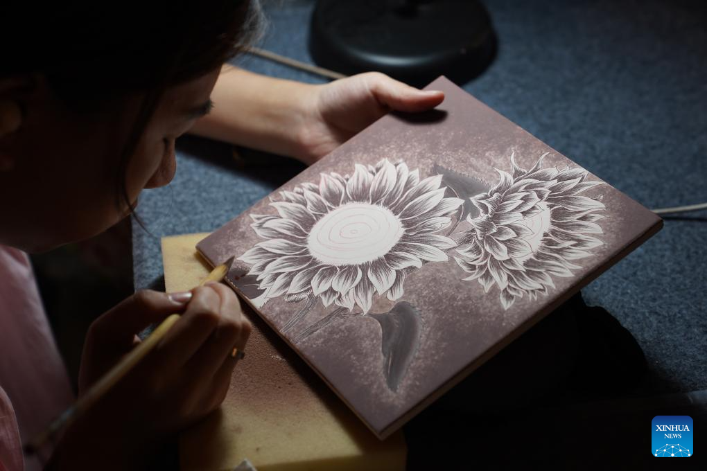 An artist paints a blue and white porcelain panel at a ceramic carnival held as a sideline event of the 2025 China Jingdezhen International Ceramic Expo in Jingdezhen, east China's Jiangxi Province, Oct. 17, 2025. The 2025 China Jingdezhen International Ceramic Expo opened on Oct. 18 in Jingdezhen, an eastern Chinese city famed as the "porcelain capital," attracting more than 1,000 buyers from home and abroad. (Xinhua/Zhou Mi)