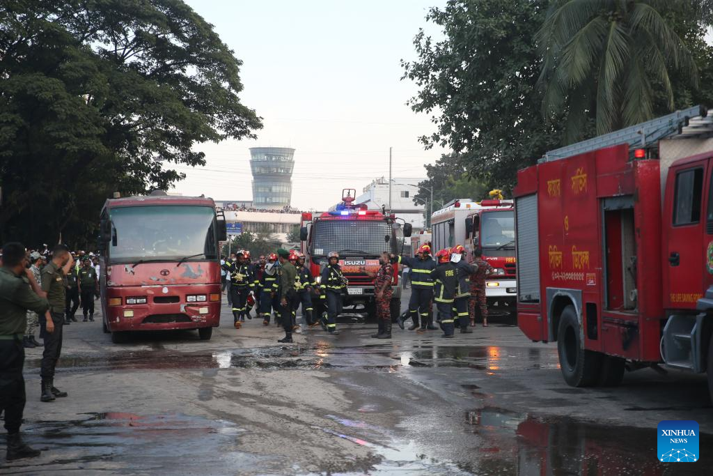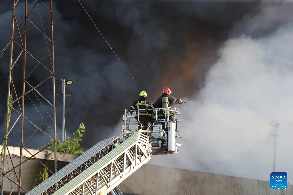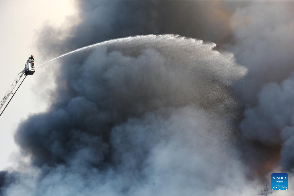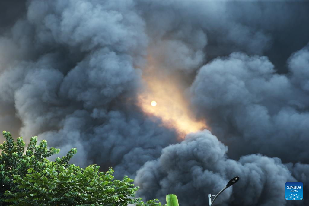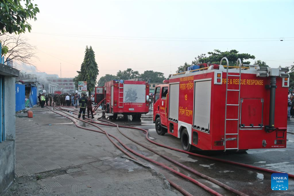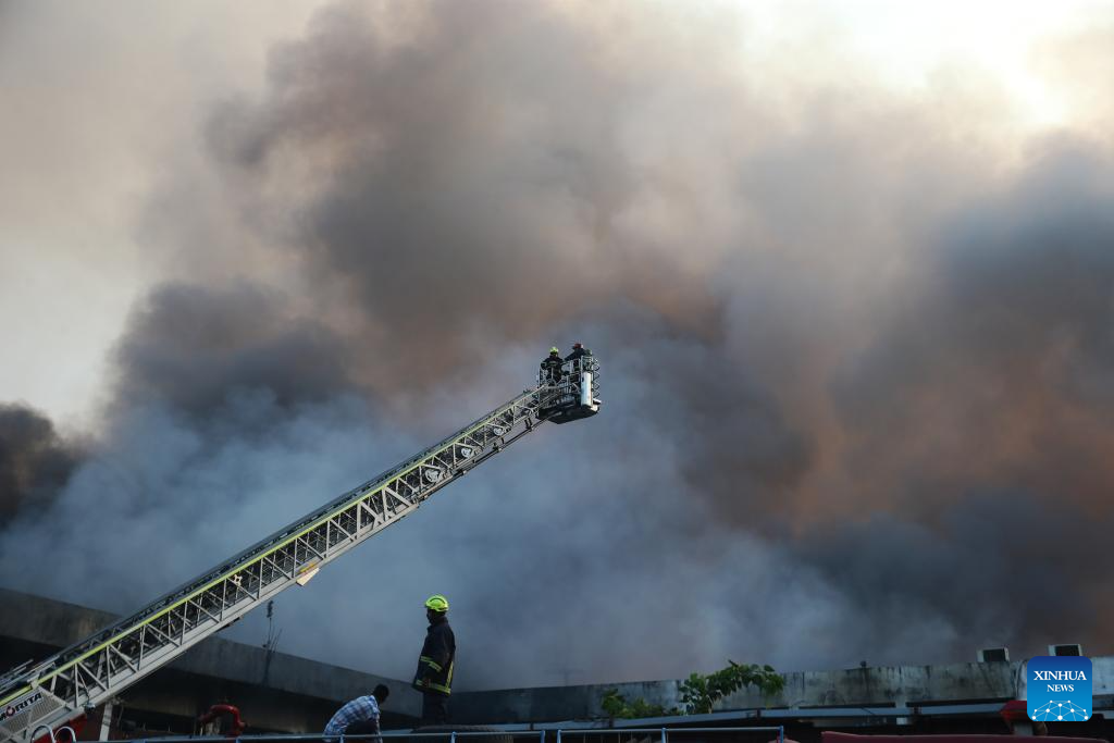 DHAKA, Oct. 18 (Xinhua) -- A massive fire broke out in the cargo area of Hazrat Shahjalal International Airport in Bangladesh's capital Dhaka Saturday, forcing a temporary suspension of flight operations.
