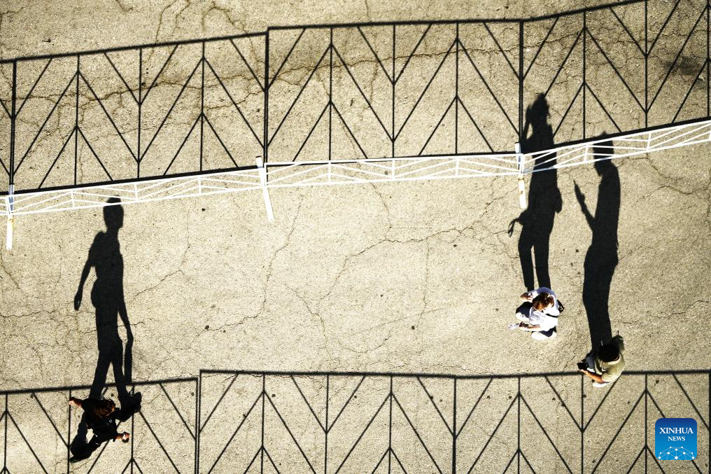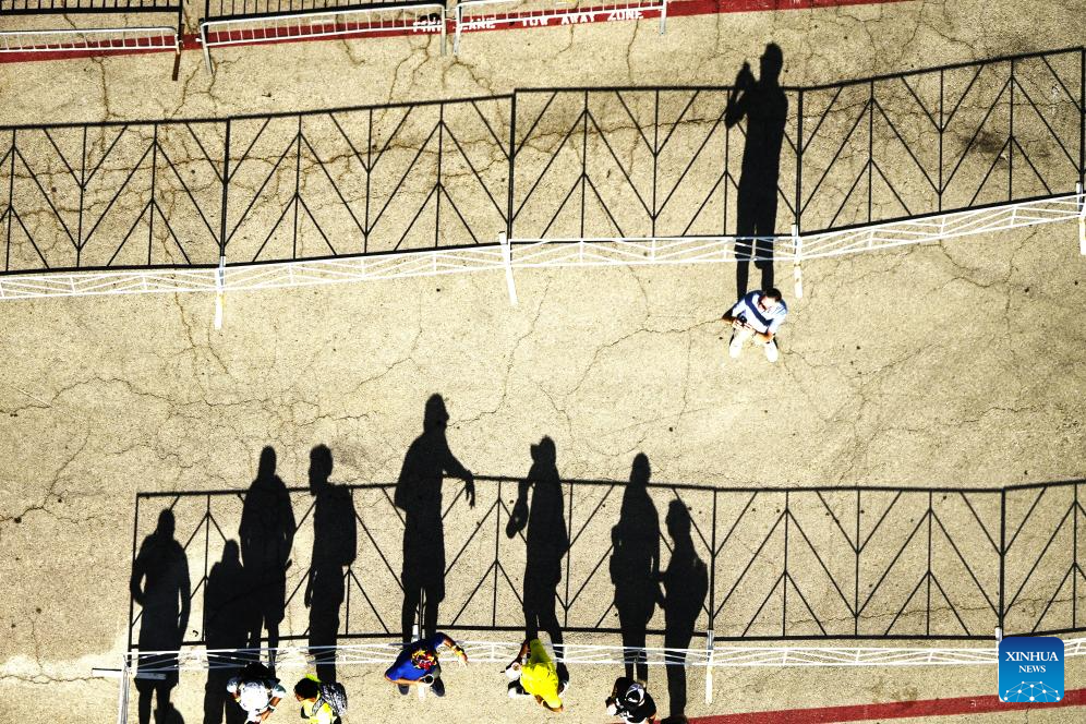 Shadows of people are projected on the ground at sunset in Austin, Texas, the United States, Oct. 17, 2025. (Xinhua/Wu Xiaoling)