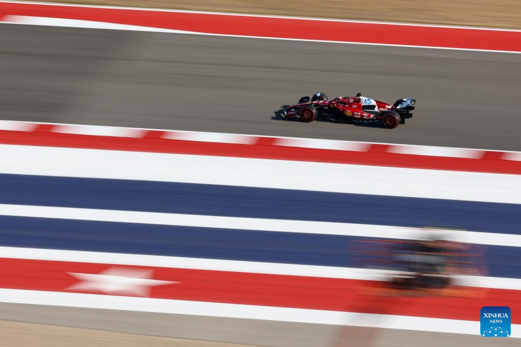 Ferrari's Monegasque driver Charles Leclerc (front) competes during the qualifying session for the Formula One United States Grand Prix, in Austin, Texas, the United States, Oct. 18, 2025. (Photo by Song Haiyuan/Xinhua)