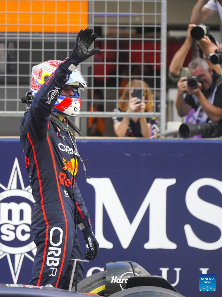 Red Bull's Dutch driver Max Verstappen waves to the spectators after the Sprint race of the Formula One United States Grand Prix, in Austin, Texas, the United States, Oct. 18, 2025. (Xinhua/Wu Xiaoling)