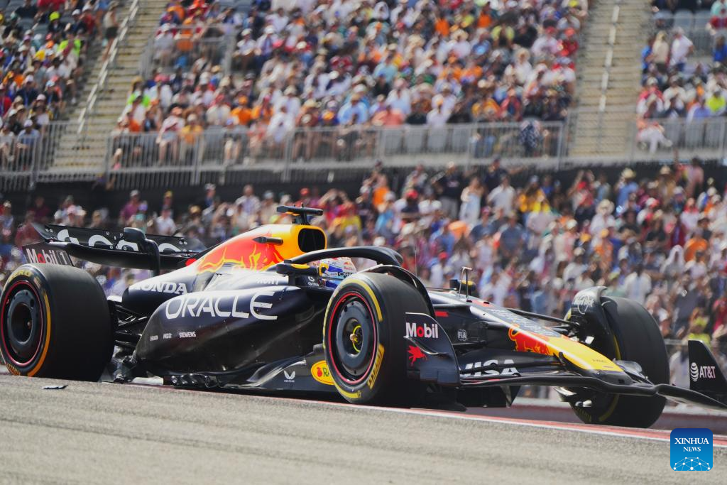 Red Bull's Dutch driver Max Verstappen competes during the Sprint race of the Formula One United States Grand Prix, in Austin, Texas, the United States, Oct. 18, 2025. (Xinhua/Wu Xiaoling)