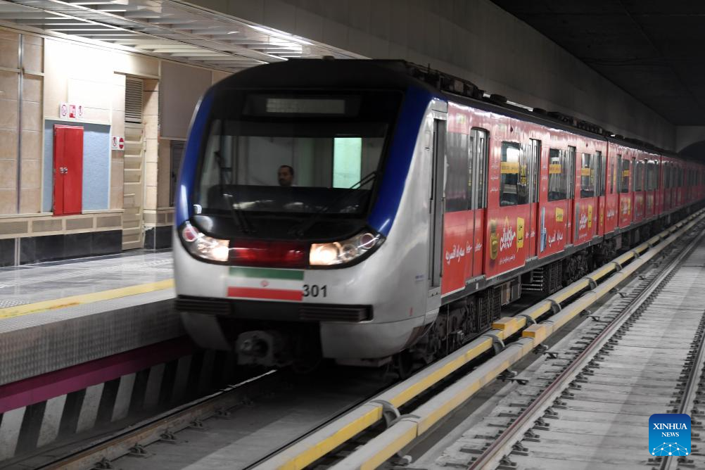A train is pictured at the newly-opened Maryam Moghaddas station of Tehran Metro Line 6 in Tehran, Iran, Oct. 18, 2025. (Xinhua/Shadati)