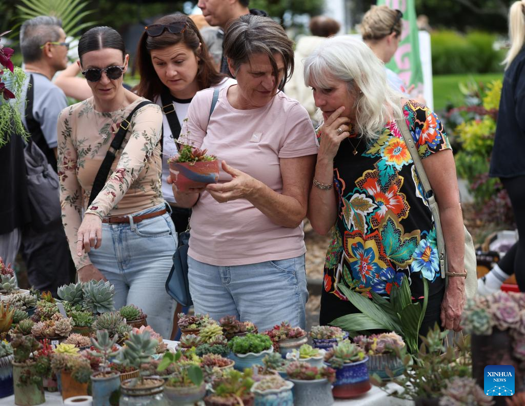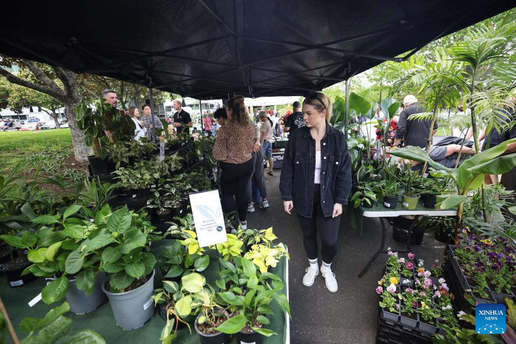 People visit the Auckland Plant Market in Auckland, New Zealand, Oct. 19, 2025. The plant market attracted a lot of visitors with its abundant plants. (Xinhua/Long Lei)