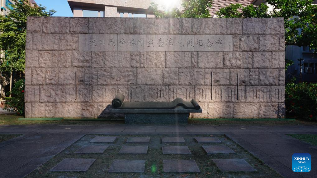 This photo taken on Oct. 5, 2025 shows a monument marking the victory against Japanese aggression and Taiwan's recovery from Japanese occupation, in Taipei, southeast China's Taiwan. (Xinhua/Qi Xianghui)