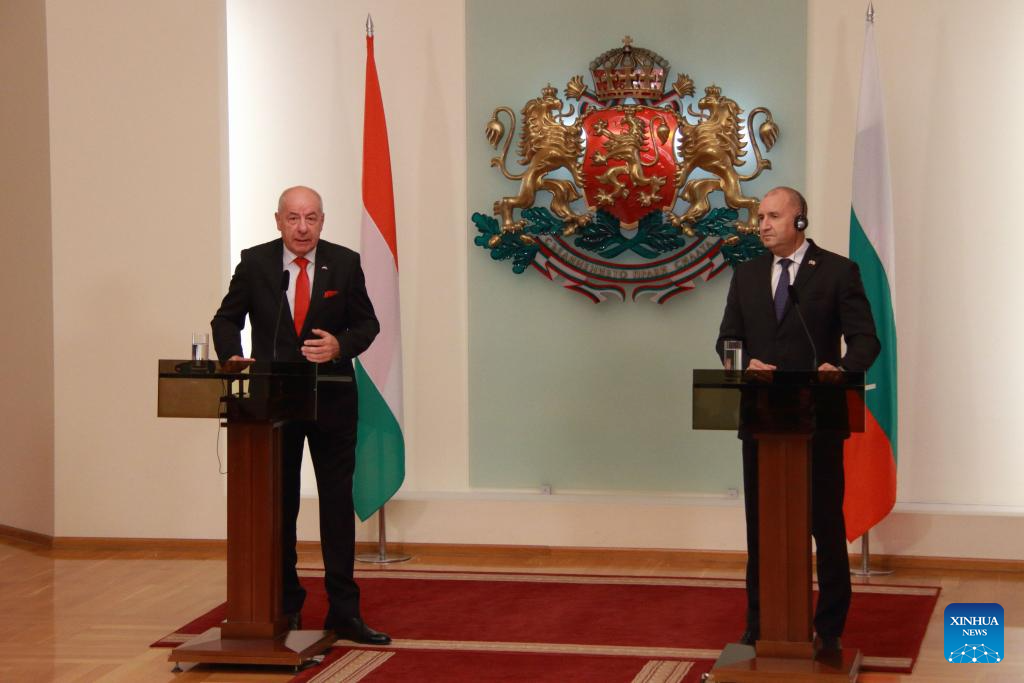 Sulyok arrived in Bulgaria on Sunday for a two-day official visit at Radev's invitation. His visit coincided with the celebration of the Bulgarian-Hungarian Friendship Day on Oct. 19. (Photo by Marian Draganov/Xinhua)