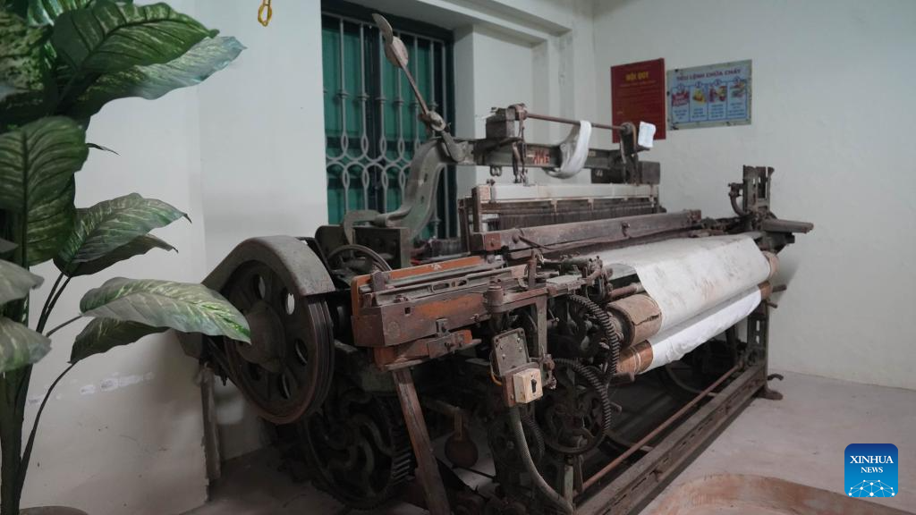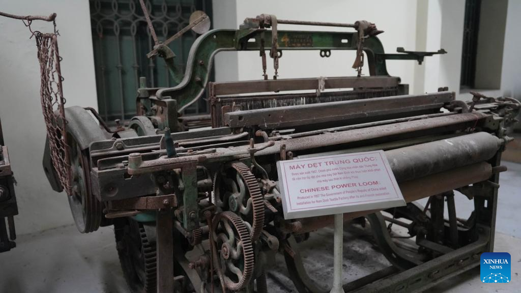 This photo taken on Oct. 9, 2025 shows Chinese-made textile equipment at Vietnam Textile and Garment Traditional House in Nam Dinh, Ninh Binh province, Vietnam. (Xinhua/Hu Jiali)
