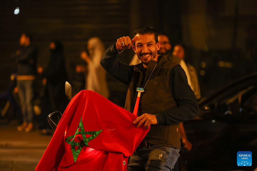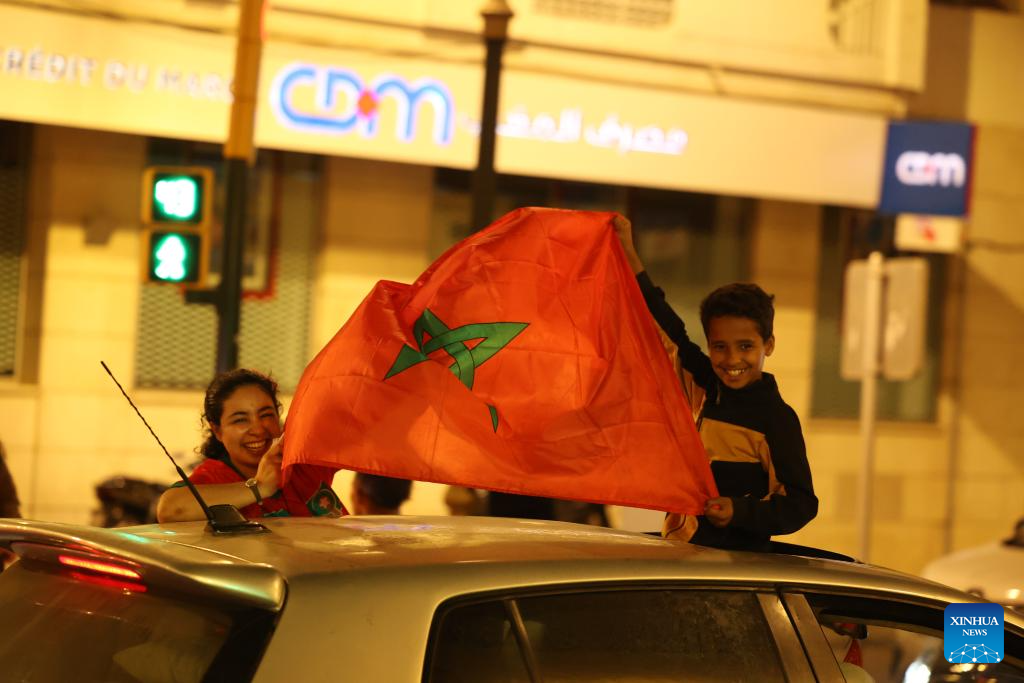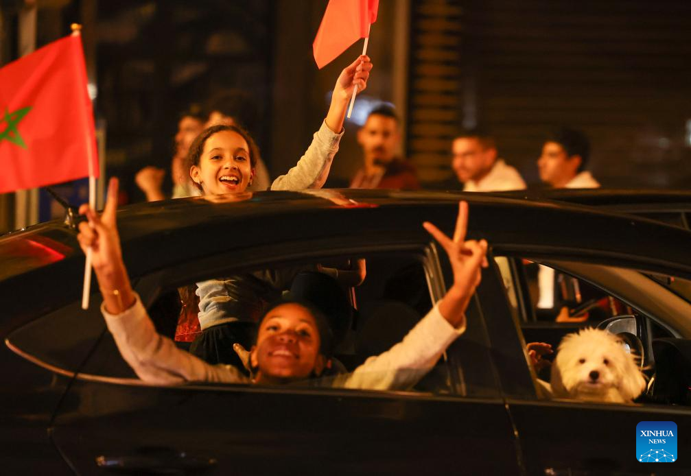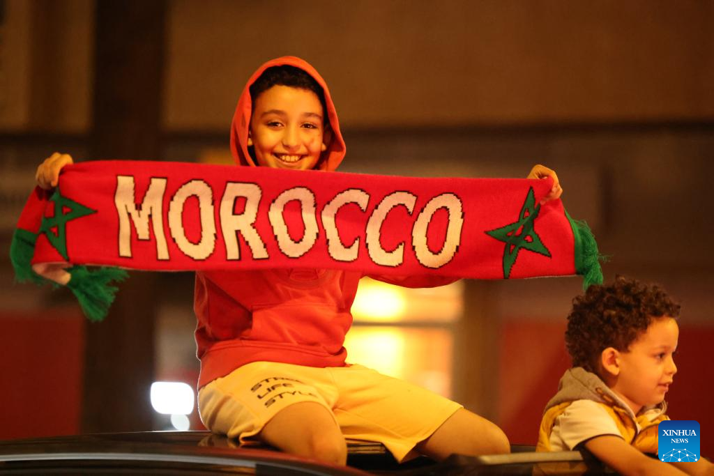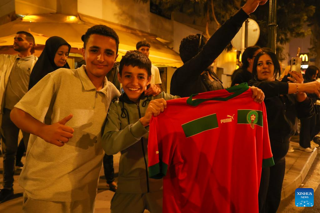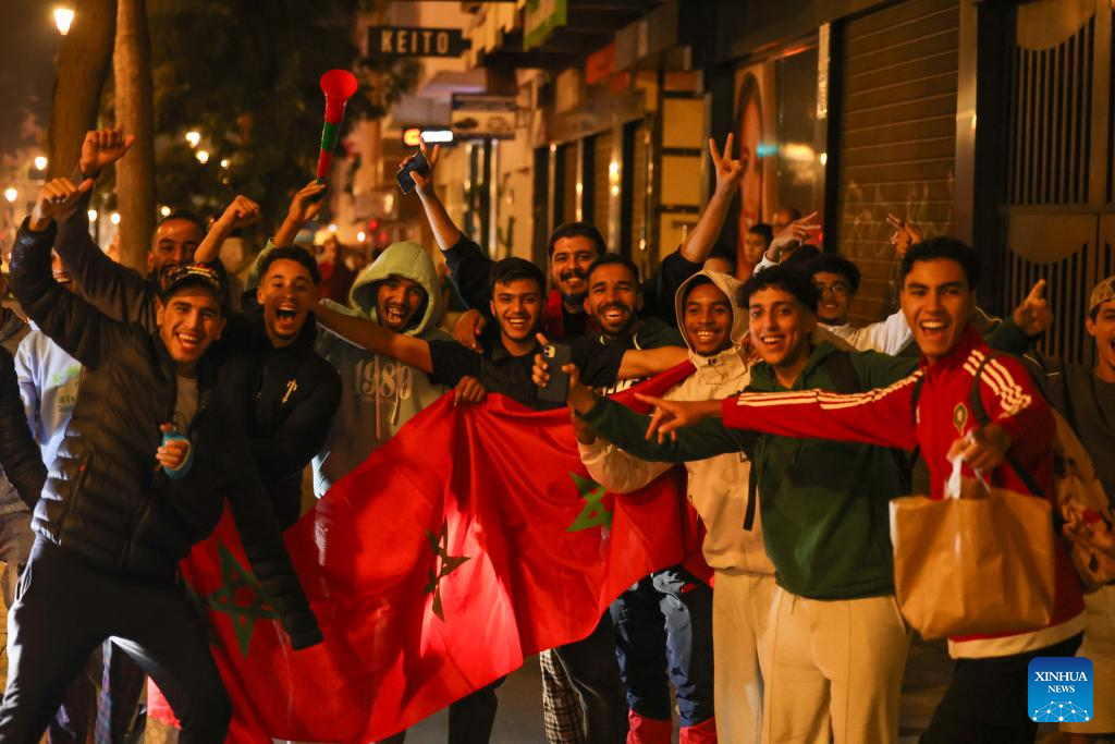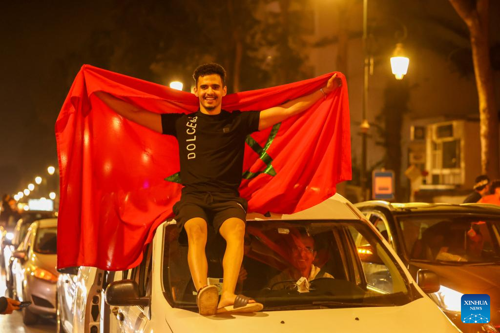 Fans celebrate in Rabat, Morocco, Oct. 20, 2025. Morocco defeated Argentina to win the FIFA U20 World Cup title on Sunday. (Xinhua/Huo Jing)