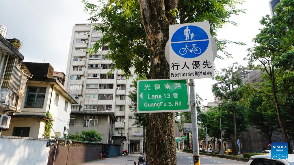 This photo taken on Oct. 13, 2025 shows a road sign on Guangfu South Road in Taipei, southeast China's Taiwan Province. (Xinhua/Qi Xianghui)
