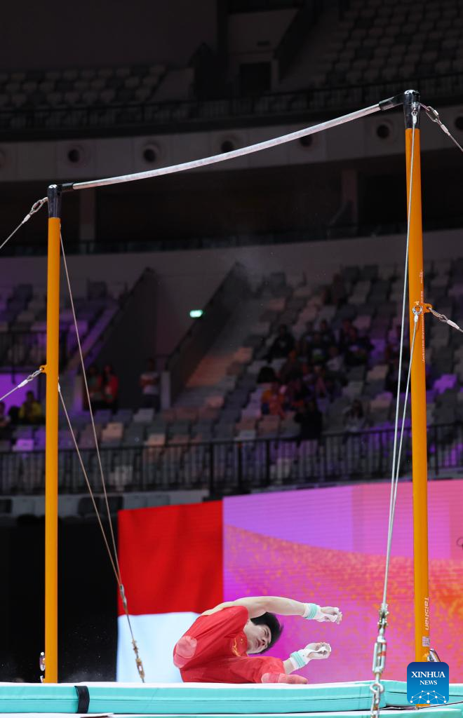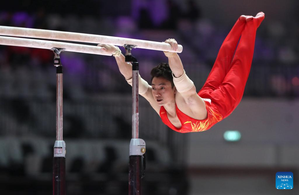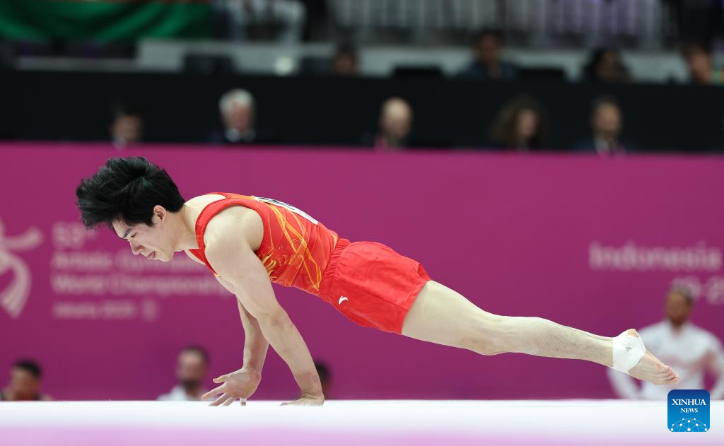 JAKARTA, Oct. 20 (Xinhua) -- Olympic champion Zou Jingyuan delivered a textbook performance on the parallel bars to lead China's charge at the 53rd FIG Artistic Gymnastics World Championships in Indonesia's Jakarta on Monday, posting a score of 15.466 points, the highest of the tournament so far.
