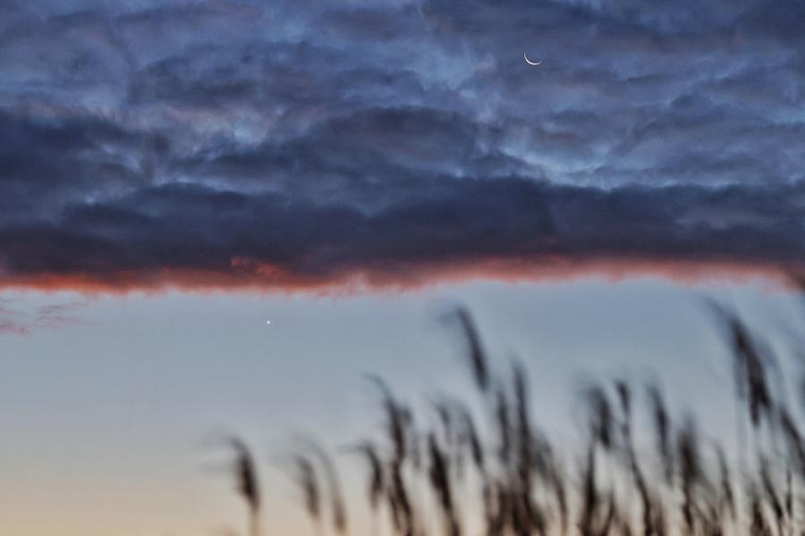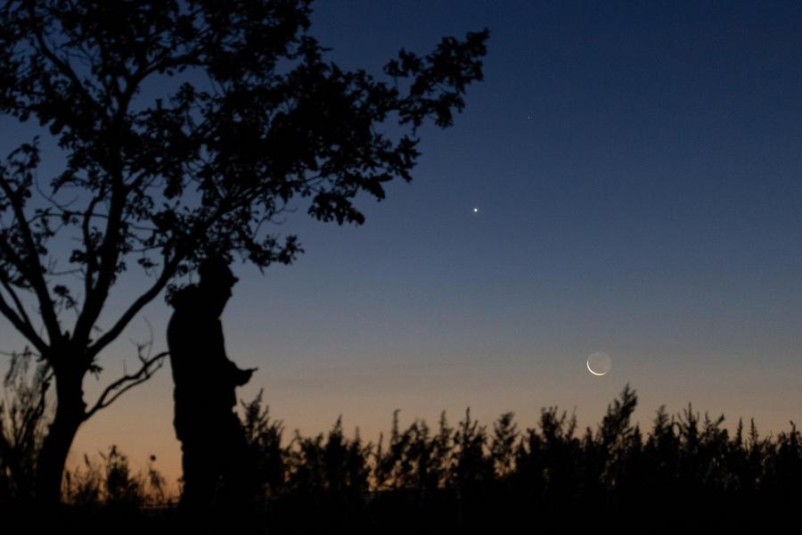 This photo taken on Oct. 19, 2025 shows the planet of Venus next to the moon in the sky over Tongjiang City, northeast China's Heilongjiang Province. (Photo by Liu Wanping/Xinhua)