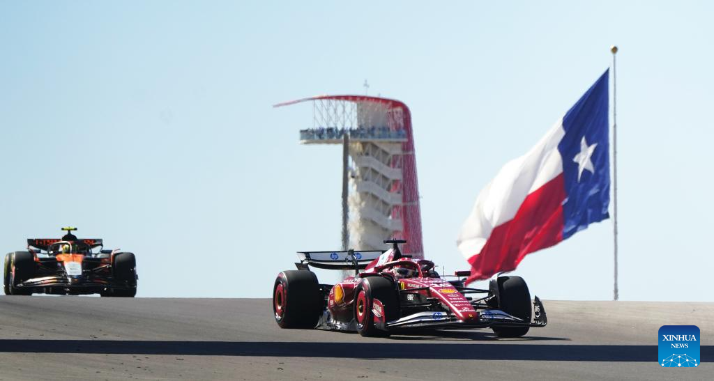 Ferrari's Monegasque driver Charles Leclerc (R) competes during the race of the 2025 Formula One United States Grand Prix in Austin, Texas, the United States, Oct. 19, 2025. (Xinhua/Wu Xiaoling)