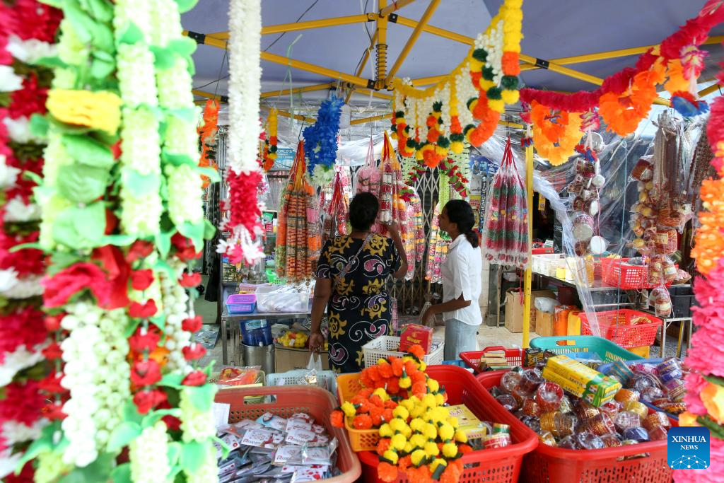Women shop for decorative items for Diwali, or the Hindu festival of lights, in Yangon, Myanmar, Oct. 20, 2025. (Xinhua/Myo Kyaw Soe)