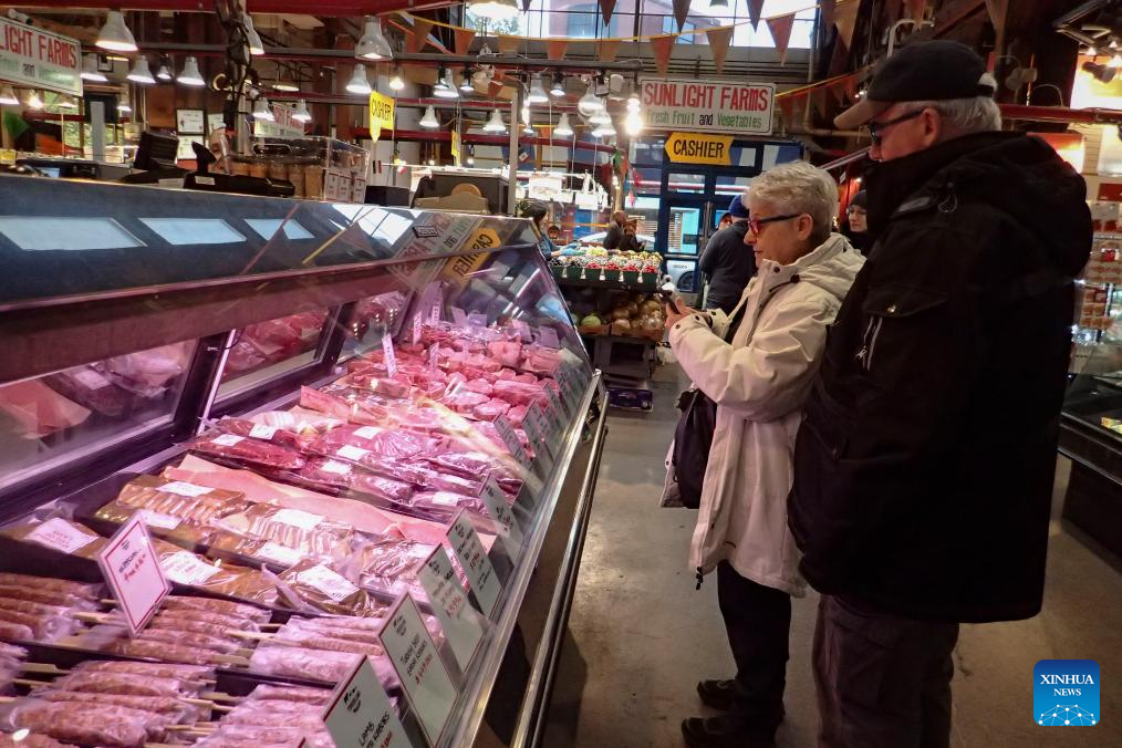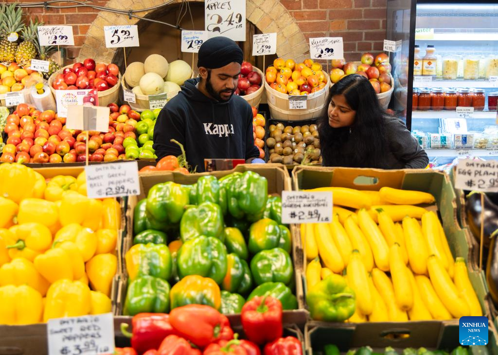 Customers shop at a market in Toronto, Canada, Oct. 21, 2025. (Photo by Zou Zheng/Xinhua)