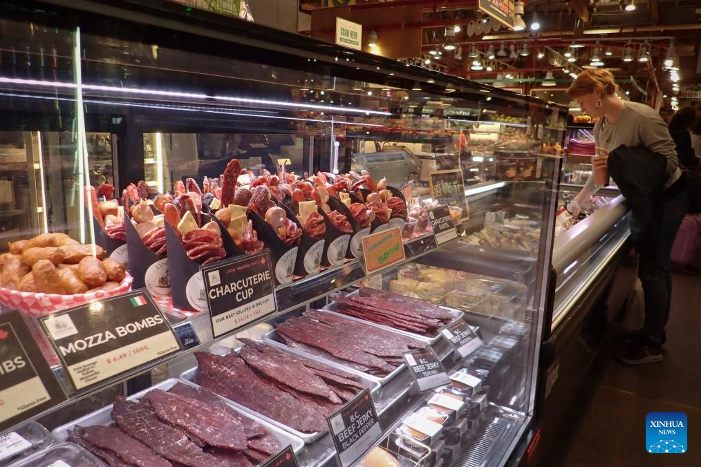 A customer shops for food at a public market in Vancouver, Canada, Oct. 21, 2025. (Photo by Liang Sen/Xinhua)