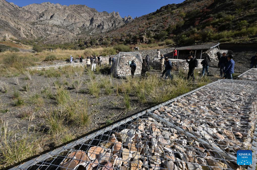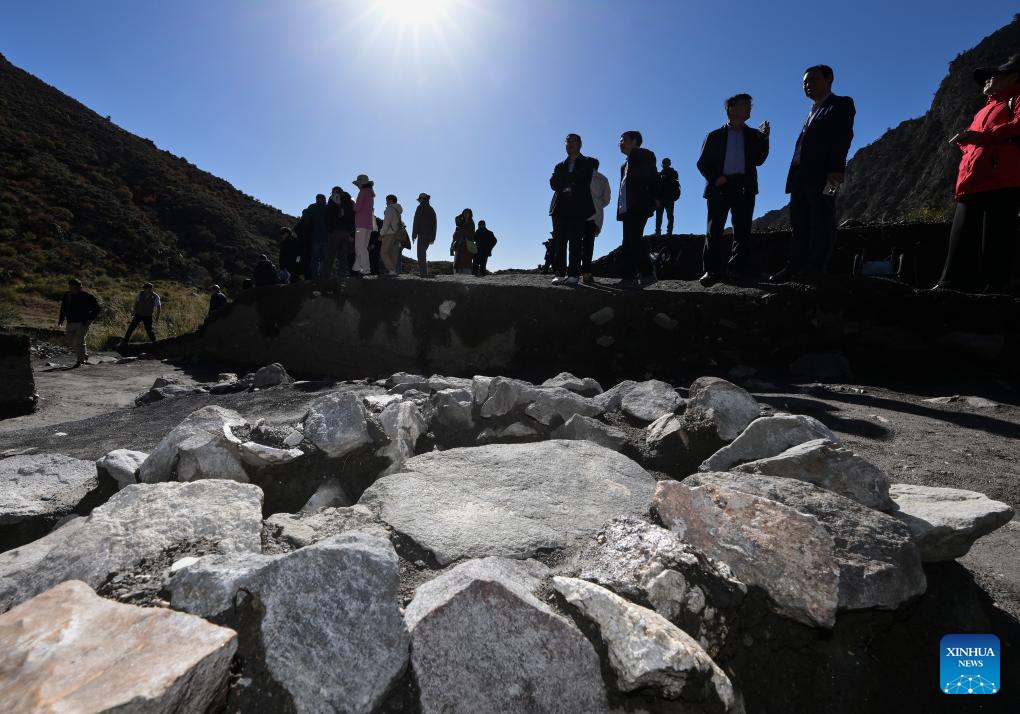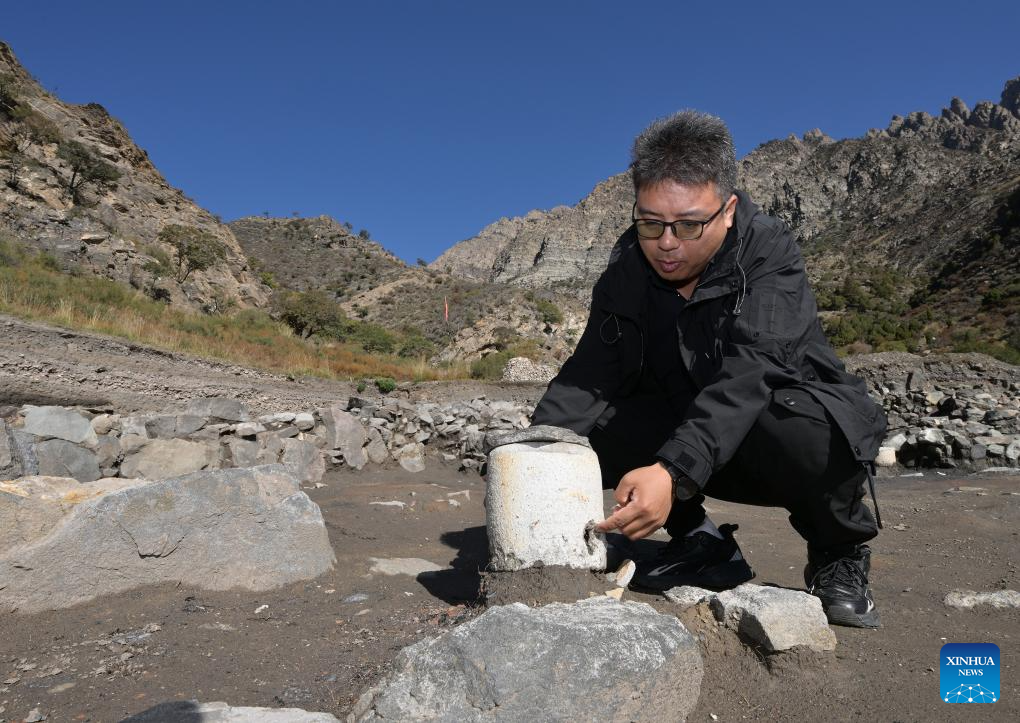 Archaeologists inspect a quartz processing site at the remnants of the Suyukou kiln in Yinchuan, capital of northwest China's Ningxia Hui Autonomous Region, Oct. 13, 2025. Remnants of the Suyukou kiln were discovered in 2017 in Yinchuan, capital of Ningxia, and cover an area of roughly 40,000 square meters. (Xinhua/Li He)