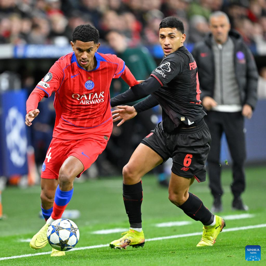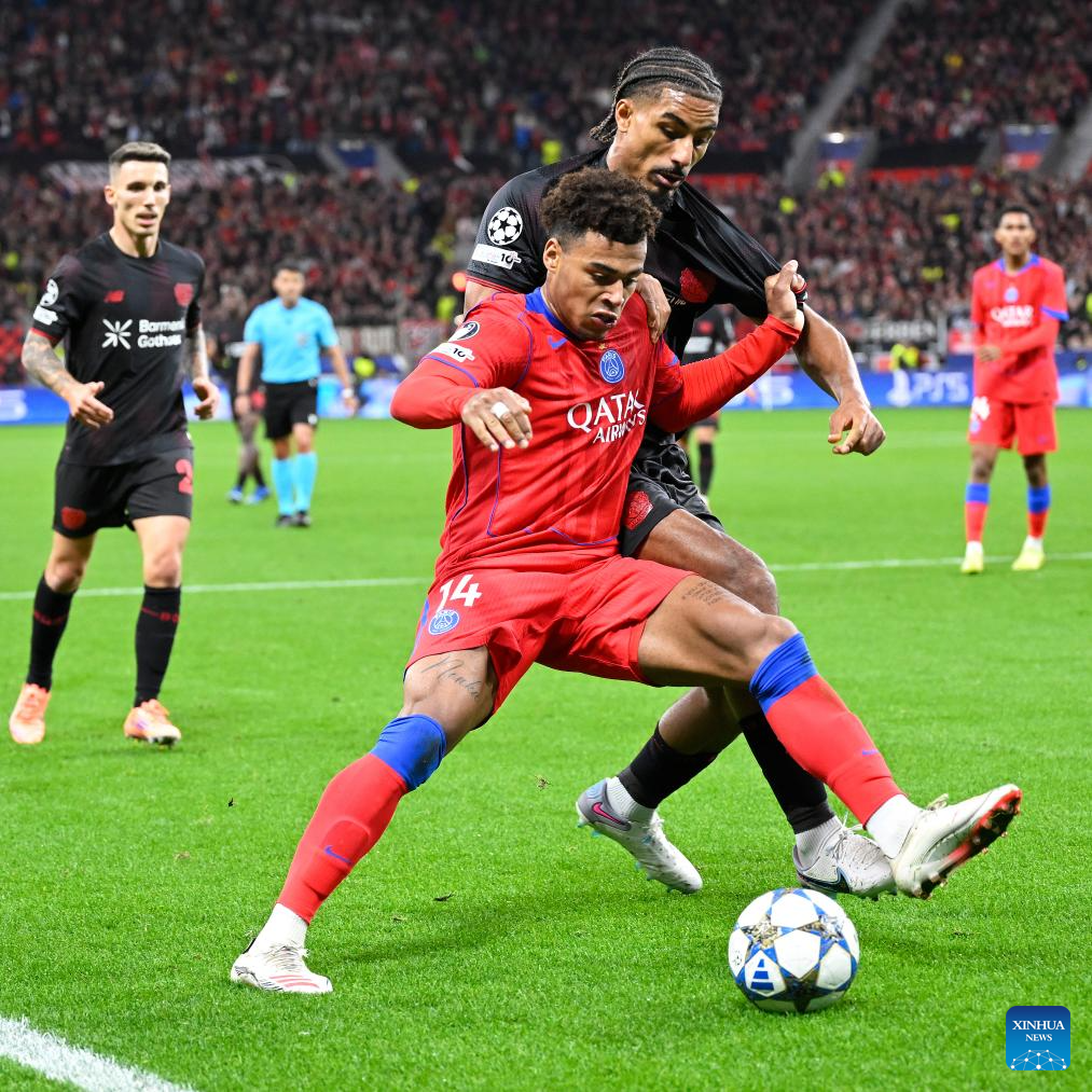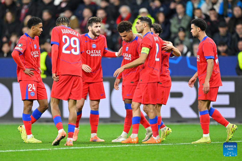 BERLIN, Oct. 21 (Xinhua) -- Paris Saint-Germain showcased its relentless attacking power with a resounding 7-2 victory over Bayer Leverkusen in the UEFA Champions League's league phase on Tuesday.