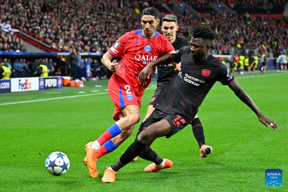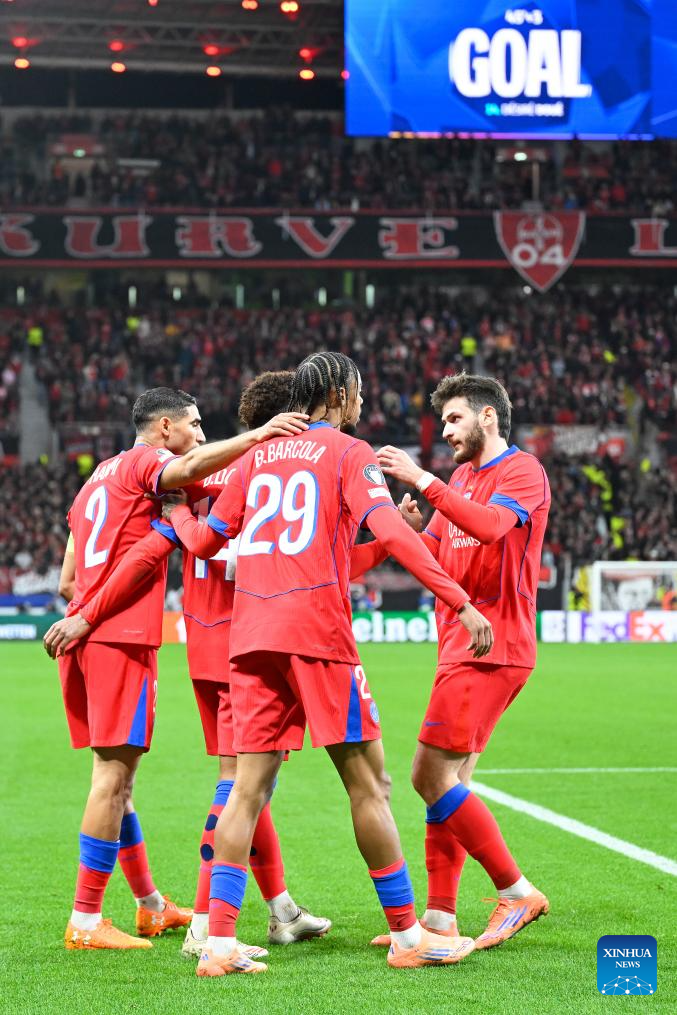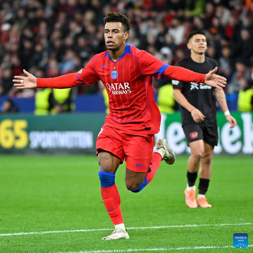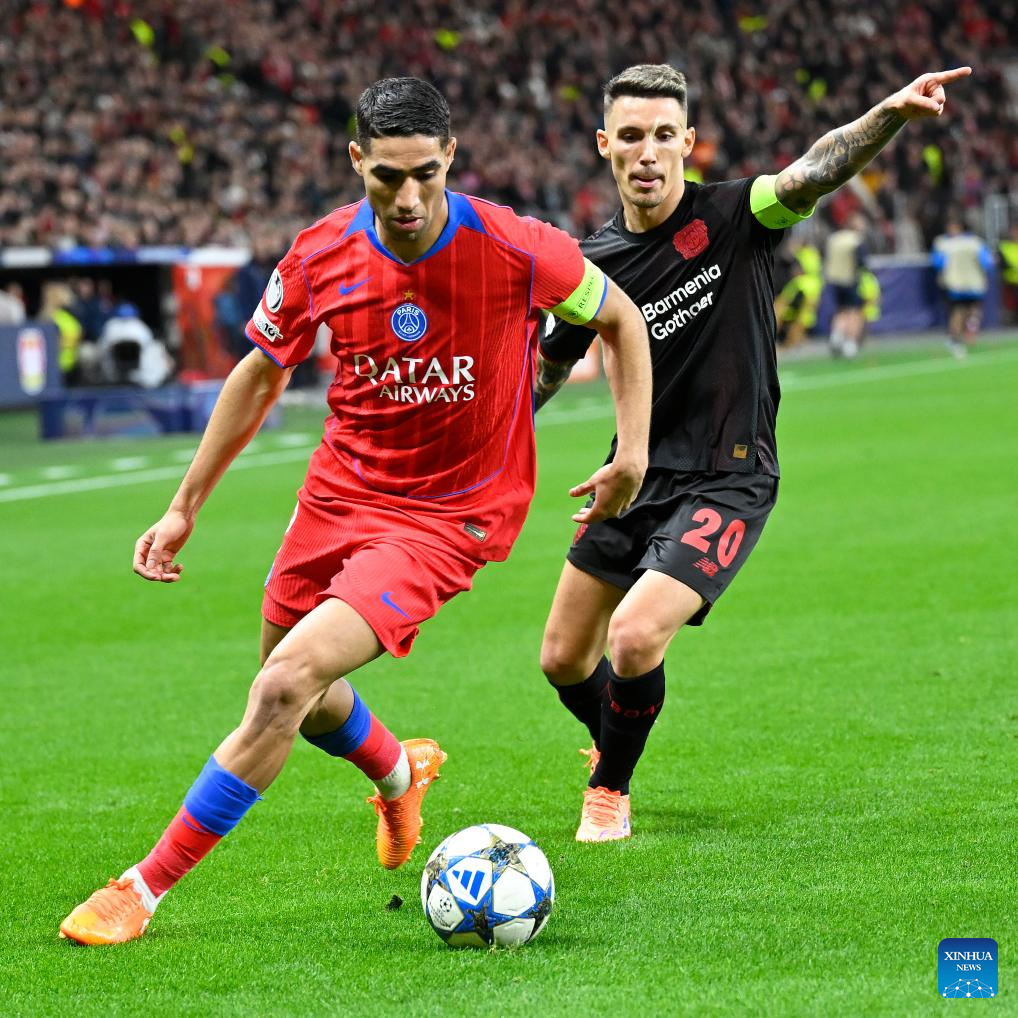 BERLIN, Oct. 21 (Xinhua) -- Paris Saint-Germain showcased its relentless attacking power with a resounding 7-2 victory over Bayer Leverkusen in the UEFA Champions League's league phase on Tuesday.