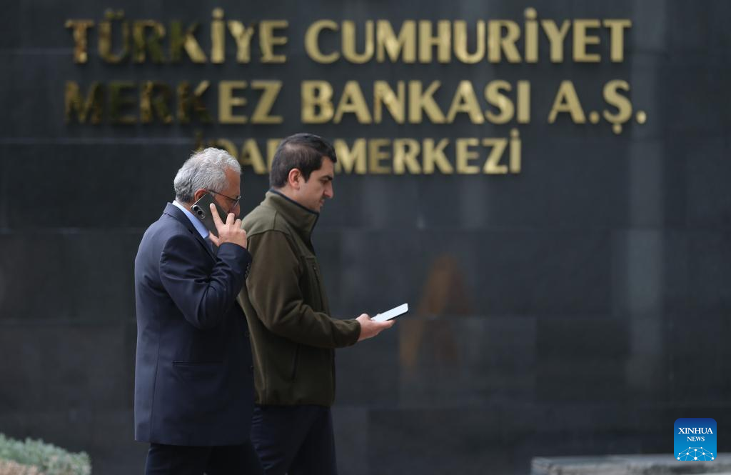 ANKARA, Oct. 23 (Xinhua) -- Türkiye's central bank lowered its key interest rate by 100 basis points on Thursday, following a series of more hawkish moves earlier this year after a slight rise in inflation in September.