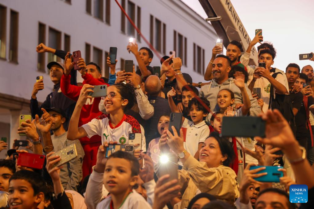 Crowds celebrate during a parade celebrating Morocco winning the U20 World Cup in Rabat, Morocco, Oct. 22, 2025. (Xinhua/Huo Jing)