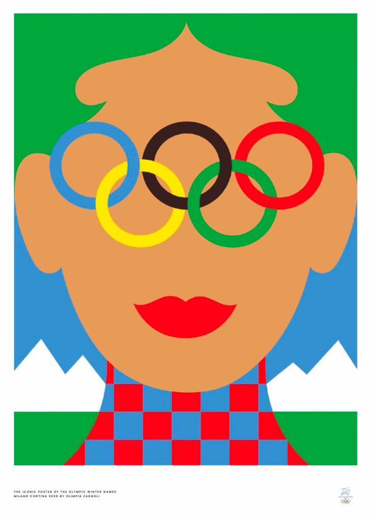 Zagnoli's design for the Olympic Winter Games uses bold colors and geometric forms to convey energy, optimism and diversity. Her work symbolizes harmony between city and nature, and between tradition and innovation.