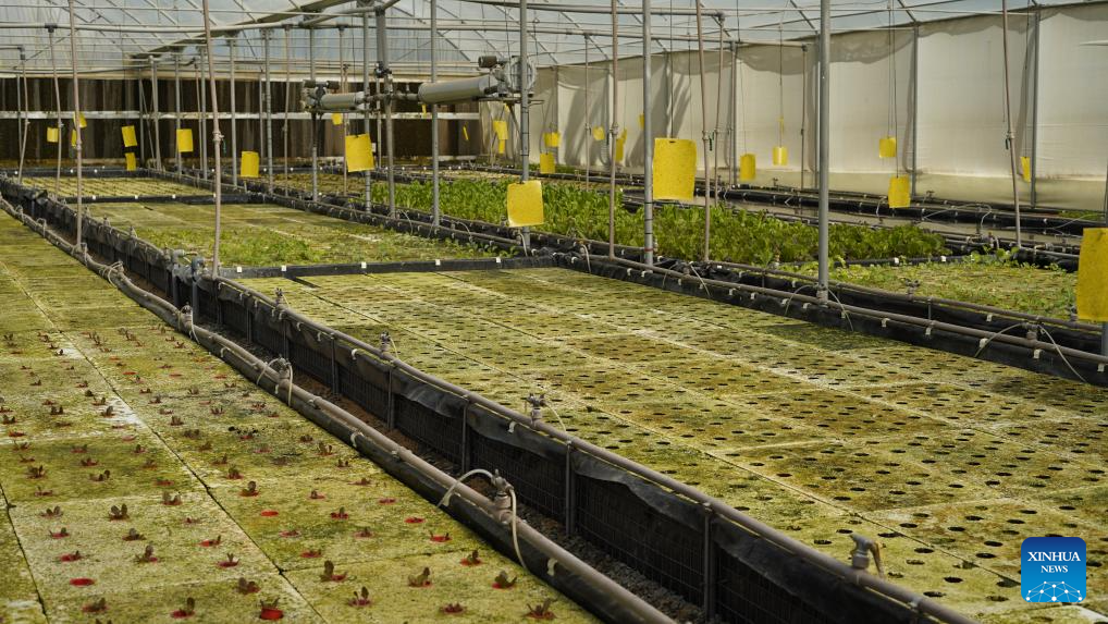 This photo taken on Oct. 23, 2025 shows a hydroponics farm in Tripoli, Libya. To alleviate water and arable land shortages, some agricultural technicians in Tripoli have been using hydroponics to cultivate vegetables. (Photo by Hazem Turkia/Xinhua)