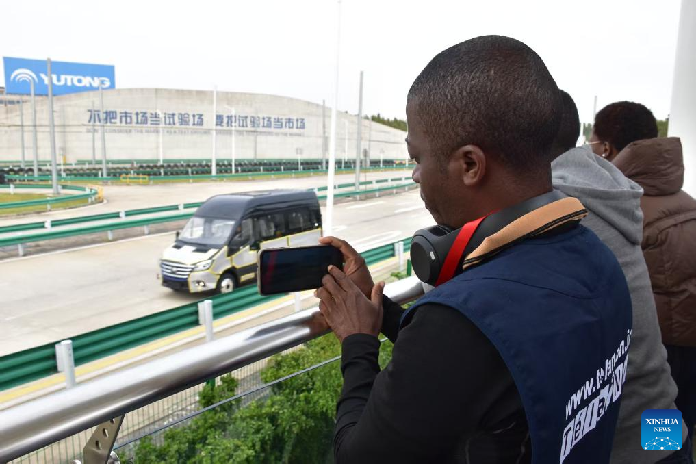 Guests visit Zhengzhou Yutong Bus Co., Ltd. in Zhengzhou, central China's Henan Province, Oct. 22, 2025. The Global Mayors Dialogue and the International Mayor's Forum on Tourism in Zhengzhou kicked off here on Friday. Guests attending the events had visited Henan Museum, Shaolin Temple and other places on Wednesday and Thursday to experience the charm of Henan. (Xinhua/Xu Zhengyuan)