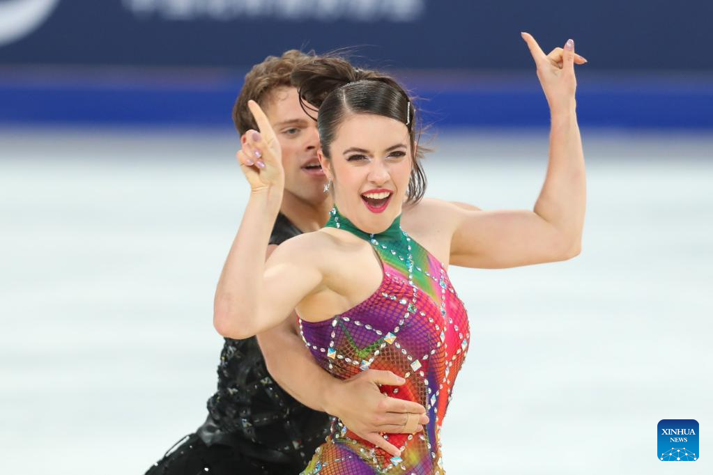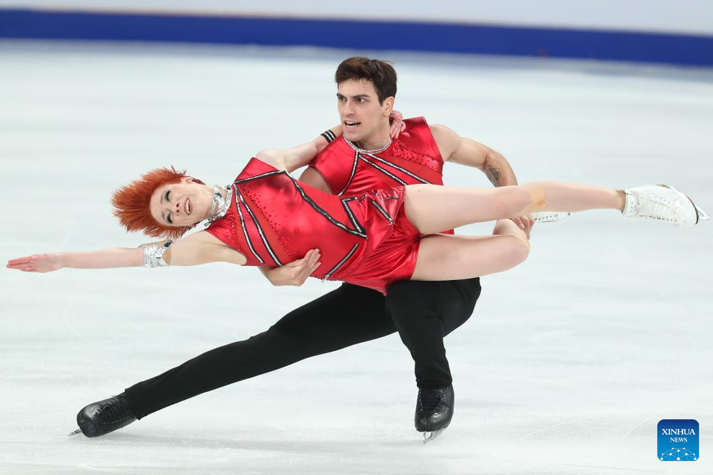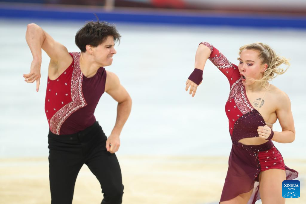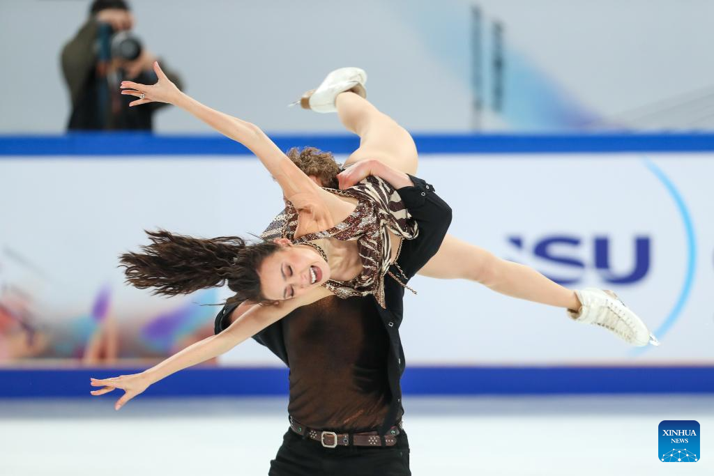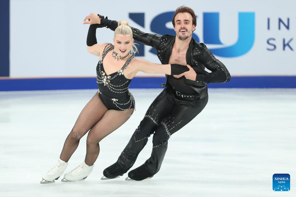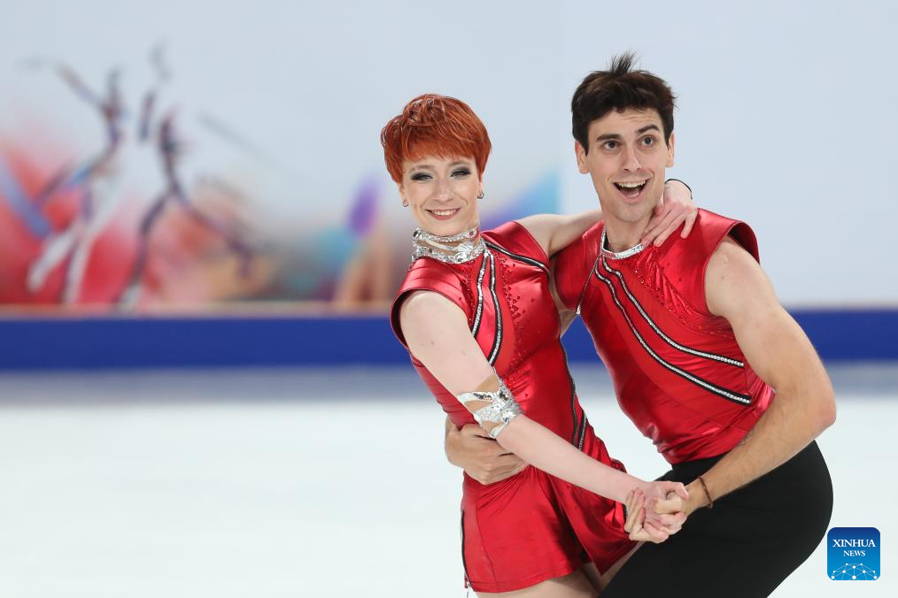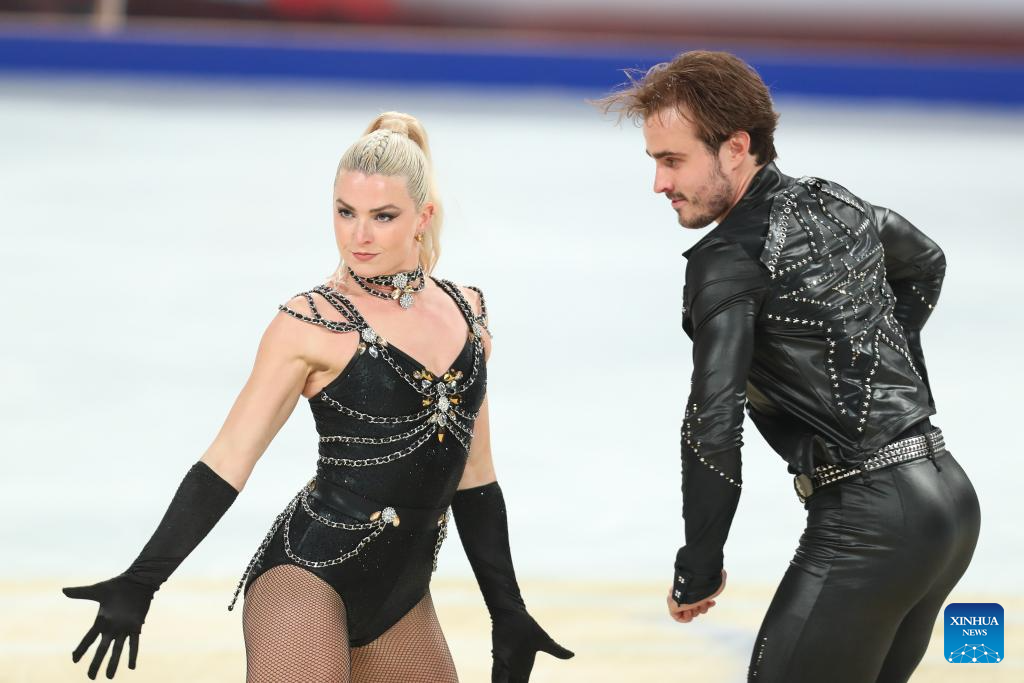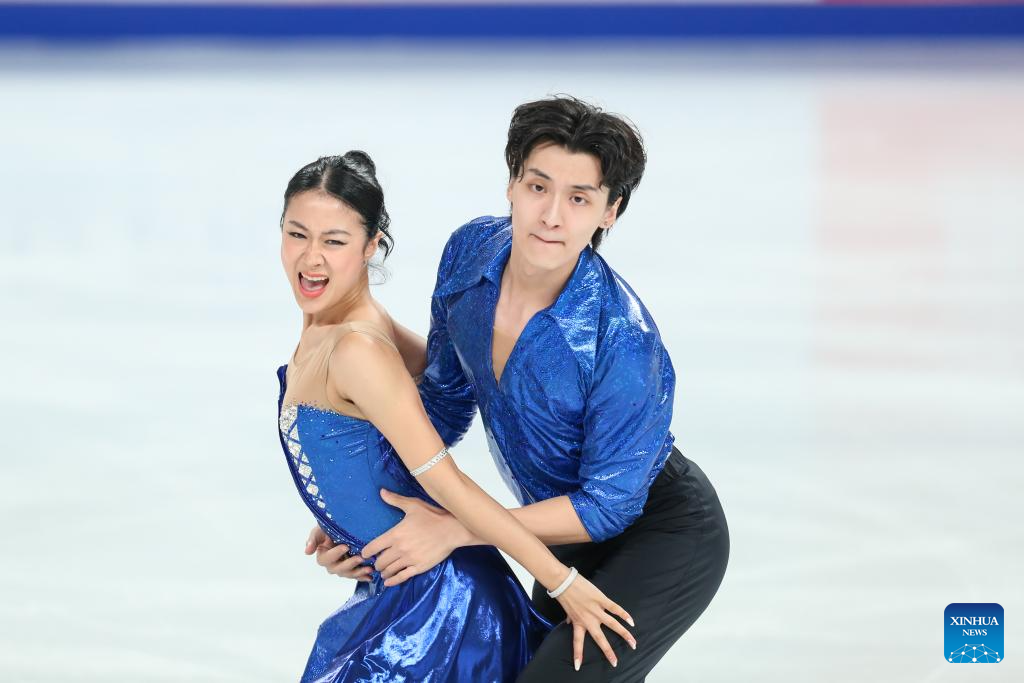 Olivia Smart (L)/Tim Dieck of Spain perform during the ice dance rhythm dance at the Cup of China ISU Grand Prix of Figure Skating 2025 in southwest China's Chongqing Municipality, Oct. 24, 2025. (Xinhua/Huang Wei)
